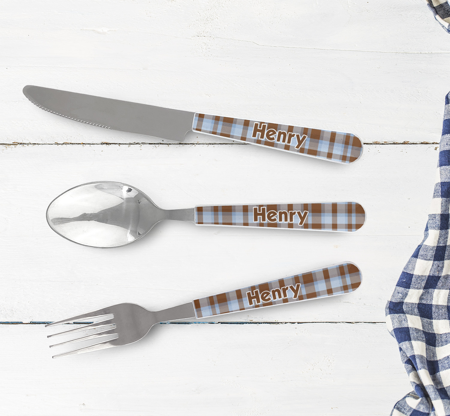 One of those items we all use on a daily basis and never give it much thought - cutlery. Having your own customized set of cutlery adds that special touch. A great addition to our custom plates and drinking pint glasses, this flatware set can be made in the same patterns to match.
