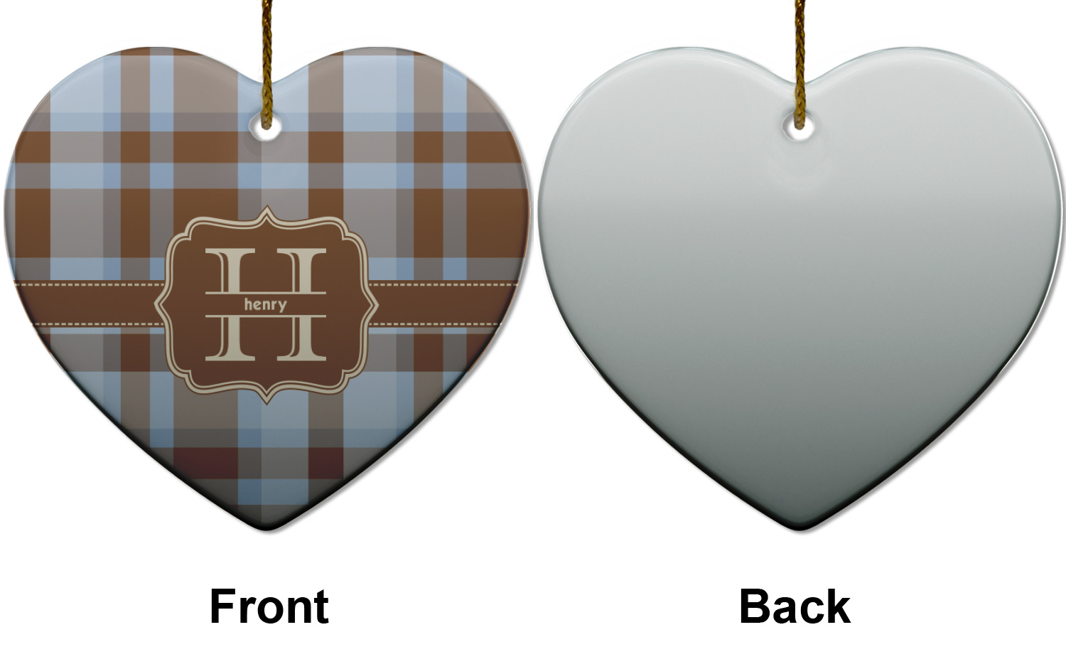 Have a happy holiday and share the joy of Christmas with your loved ones by hanging up personalized ceramic ornaments! Ornaments add a touch of who you are and the things you love onto the Christmas tree! Create custom ornaments for the kids and have them hang up their own star with their name, or pay remembrance this holiday to missed loved ones with our ceramic heart ornament. Browse many of our unique designs and customize them the way you'd like! From monograms, logos, and patterns, we have it all! You can even upload a photo of your family for us to print onto the ornament! The possibilities are endless!