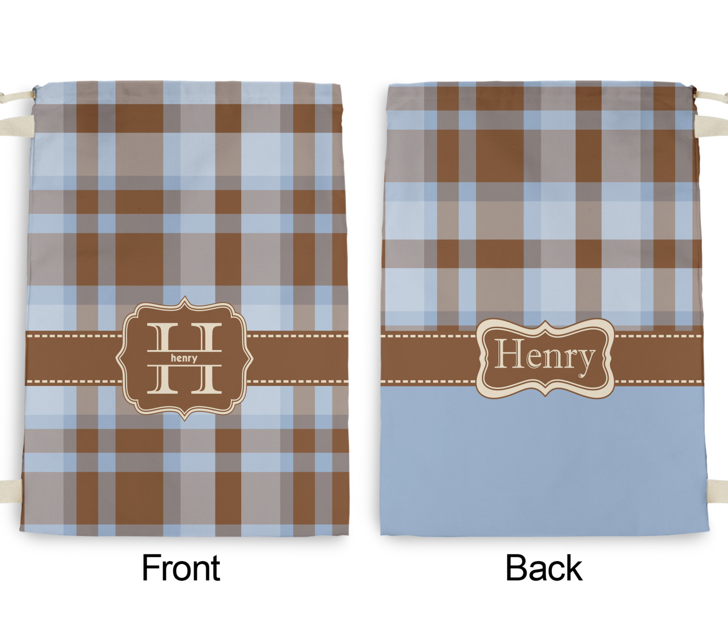 Carry your laundry in style with these customized laundry bags. Available in two sizes, featuring a natural colored woven strap and a cinch cord, these bags hold a lot of clothes or anything else you want to fit in them.