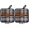Our personalized pot holders feature a neoprene front that displays your personalization in vibrant colors. The backing of the hot pot holder is rubberized; the textured backing allows you to have a great grip when using this custom pot holder. The two materials are joined with a sleek, black trim, and the holder also includes an attached loop for hanging and storage. The pot holder is approximately 8.75 inches by 8.75 inches and 0.25 inches tall, while the fabric loop is 2.5 inches long. You can purchase a kitchen pot holder by itself or as a set of 2. We also offer a set including one pot holder and one oven mitt.