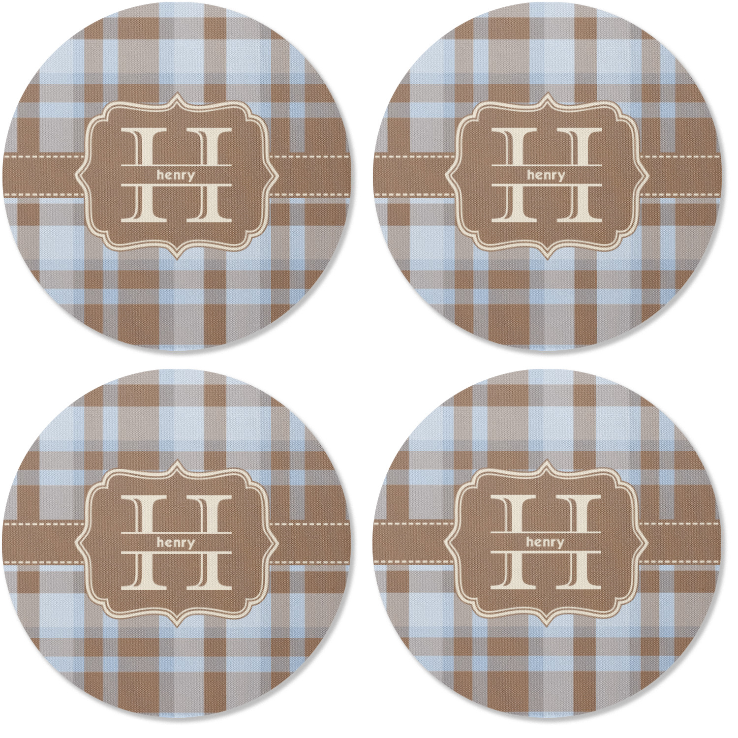 These drink coasters have a smooth, polyester top and a textured, rubber backing on its bottom. The non-slip rubber backing underneath works to keep any spills at bay. At 4 by 4 by 0.25 inches thick, these custom coasters are a suitable size for most drinkware. Your personalization is displayed atop the face of the cup coaster. We sell these rubber coasters in two different shapes: square and round. You can buy each shape as singulars or as a set of 4.