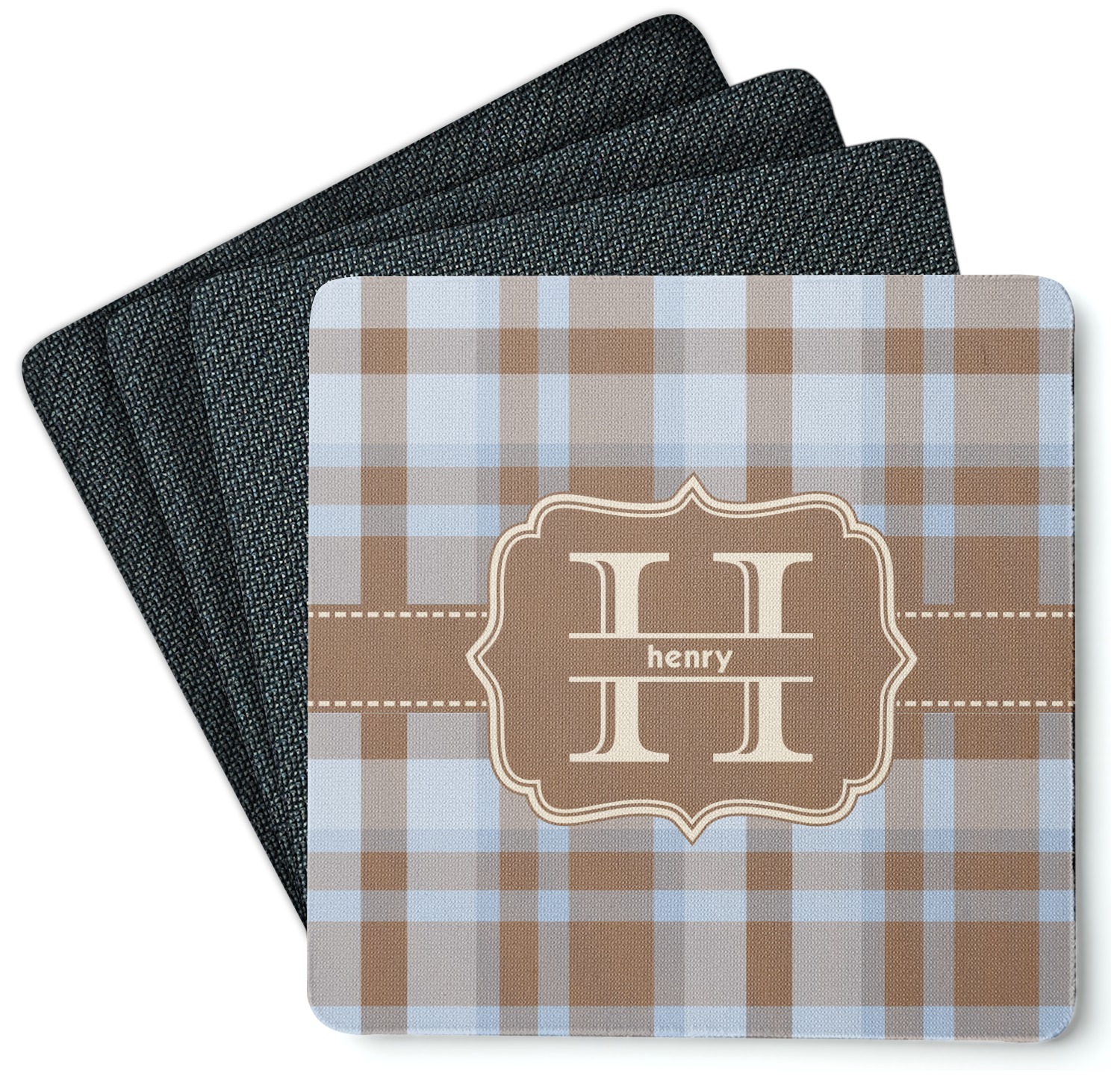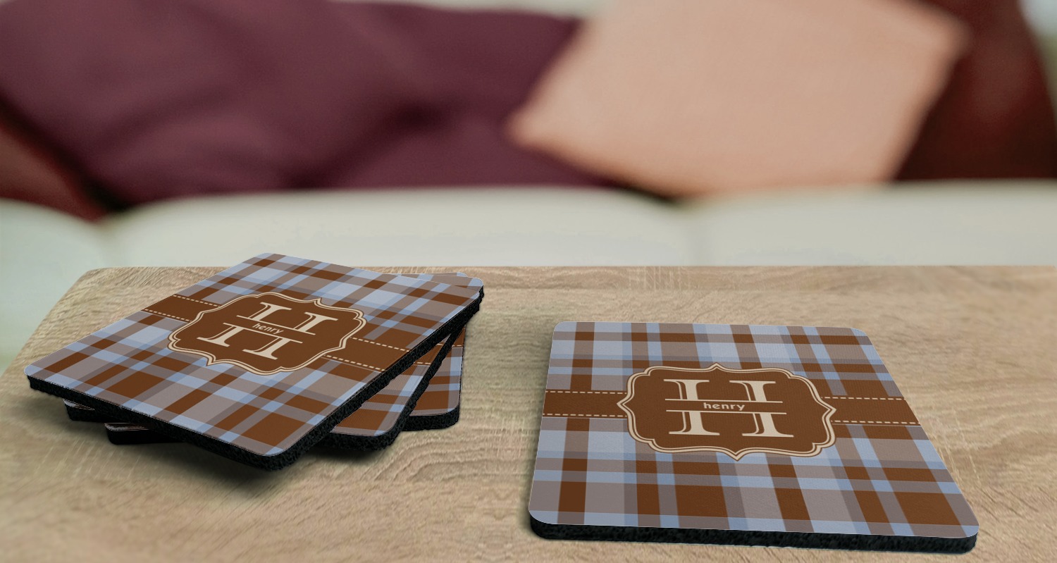 These drink coasters have a smooth, polyester top and a textured, rubber backing on its bottom. The non-slip rubber backing underneath works to keep any spills at bay. At 4 by 4 by 0.25 inches thick, these custom coasters are a suitable size for most drinkware. Your personalization is displayed atop the face of the cup coaster. We sell these rubber coasters in two different shapes: square and round. You can buy each shape as singulars or as a set of 4.