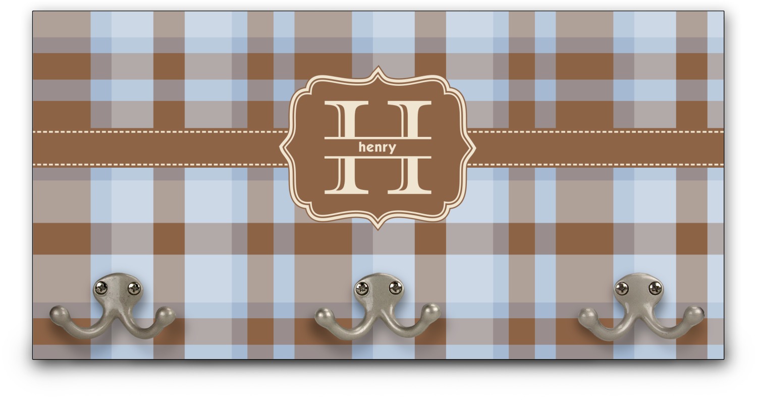 This coat rack is the perfect way to add some personality to your wall or entryway. The board is made of a strong maple that is approximately 16" x 8". The three 2-prong hooks are a sturdy metal that have three screws attaching them to the board. Your design is printed right onto the front of the board while the back and sides are a simple black.