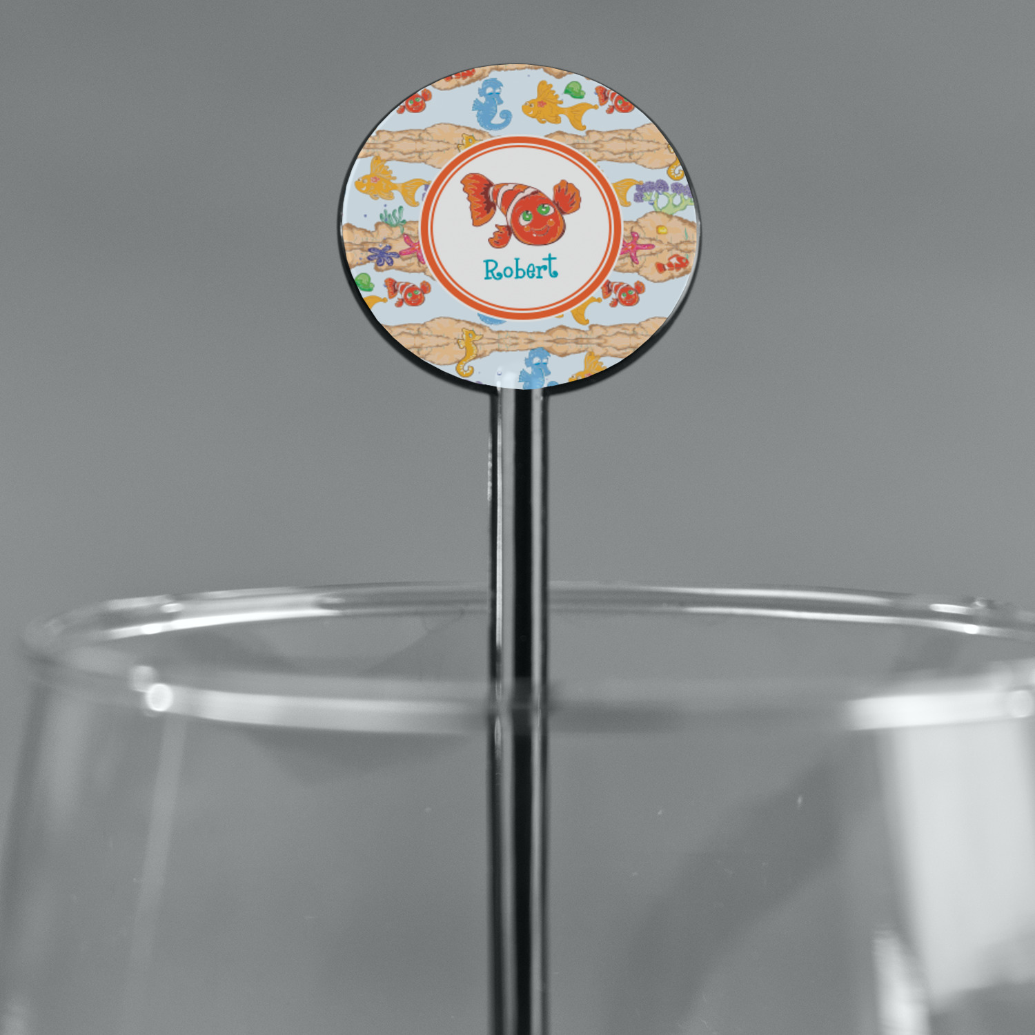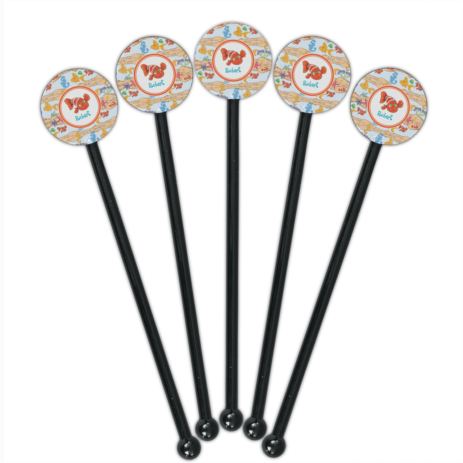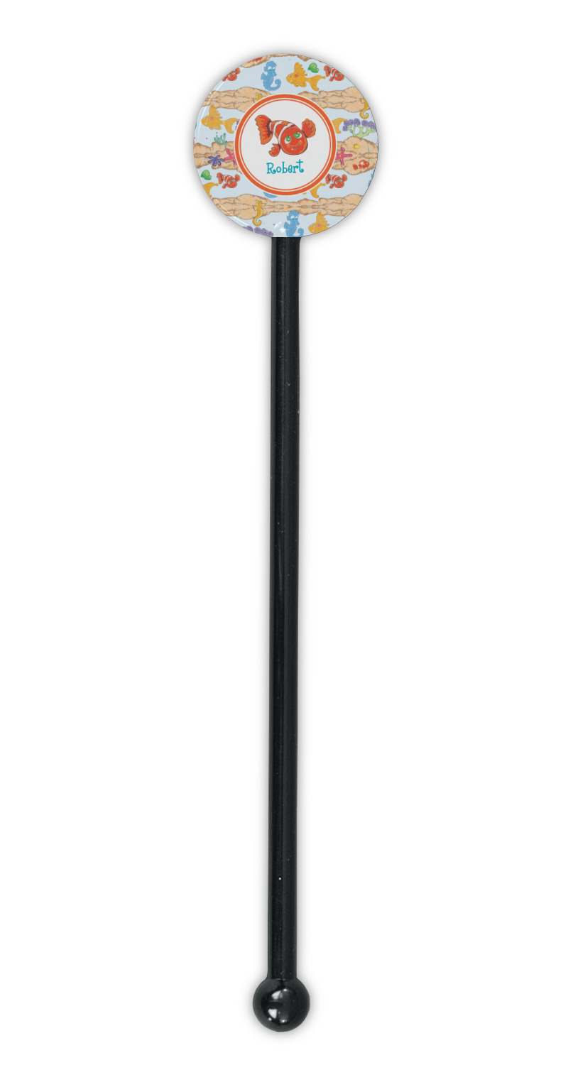 Coastal / Beach Style Designs for 5.5" Round Plastic Stir Sticks - Black - Single-Sided