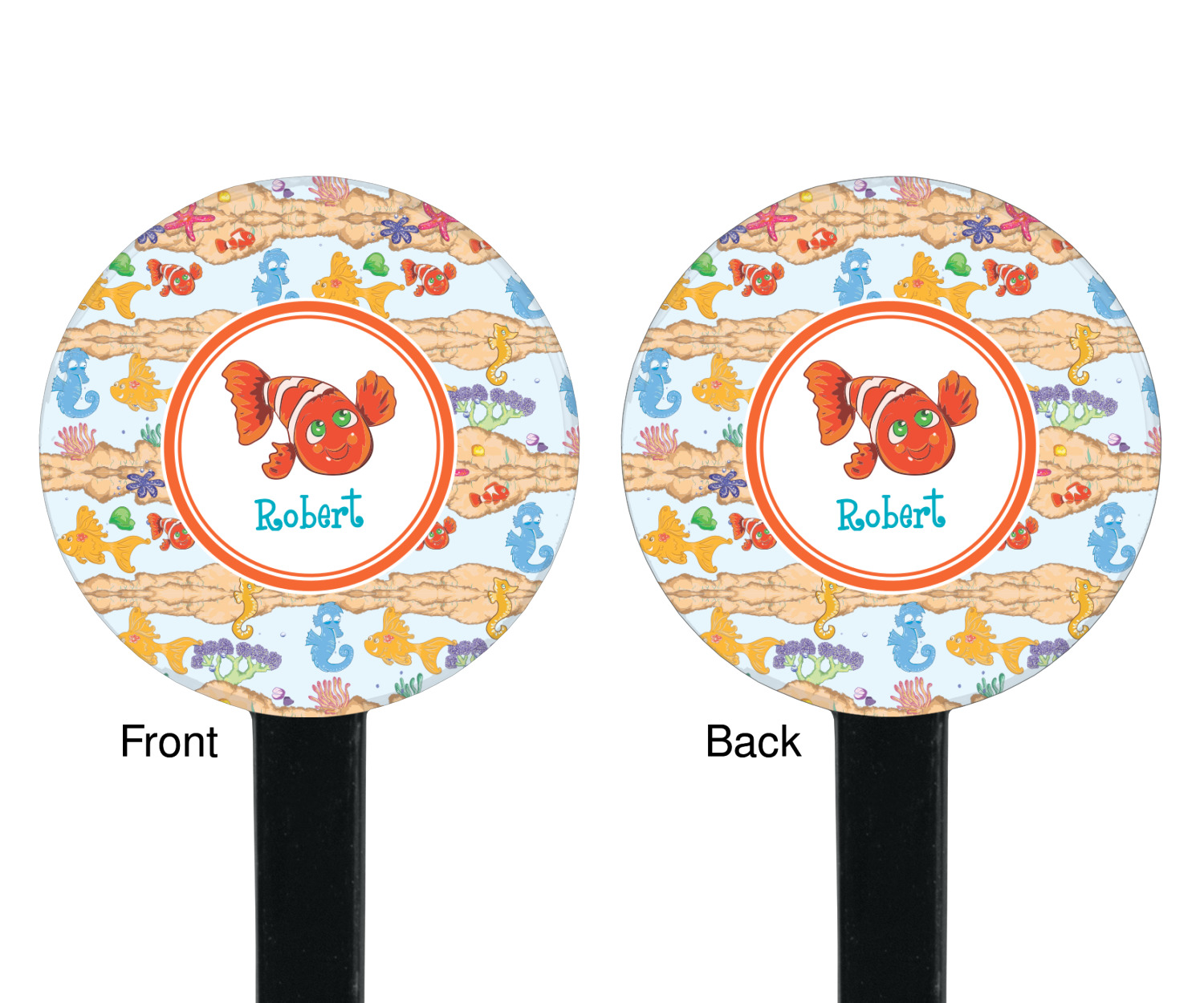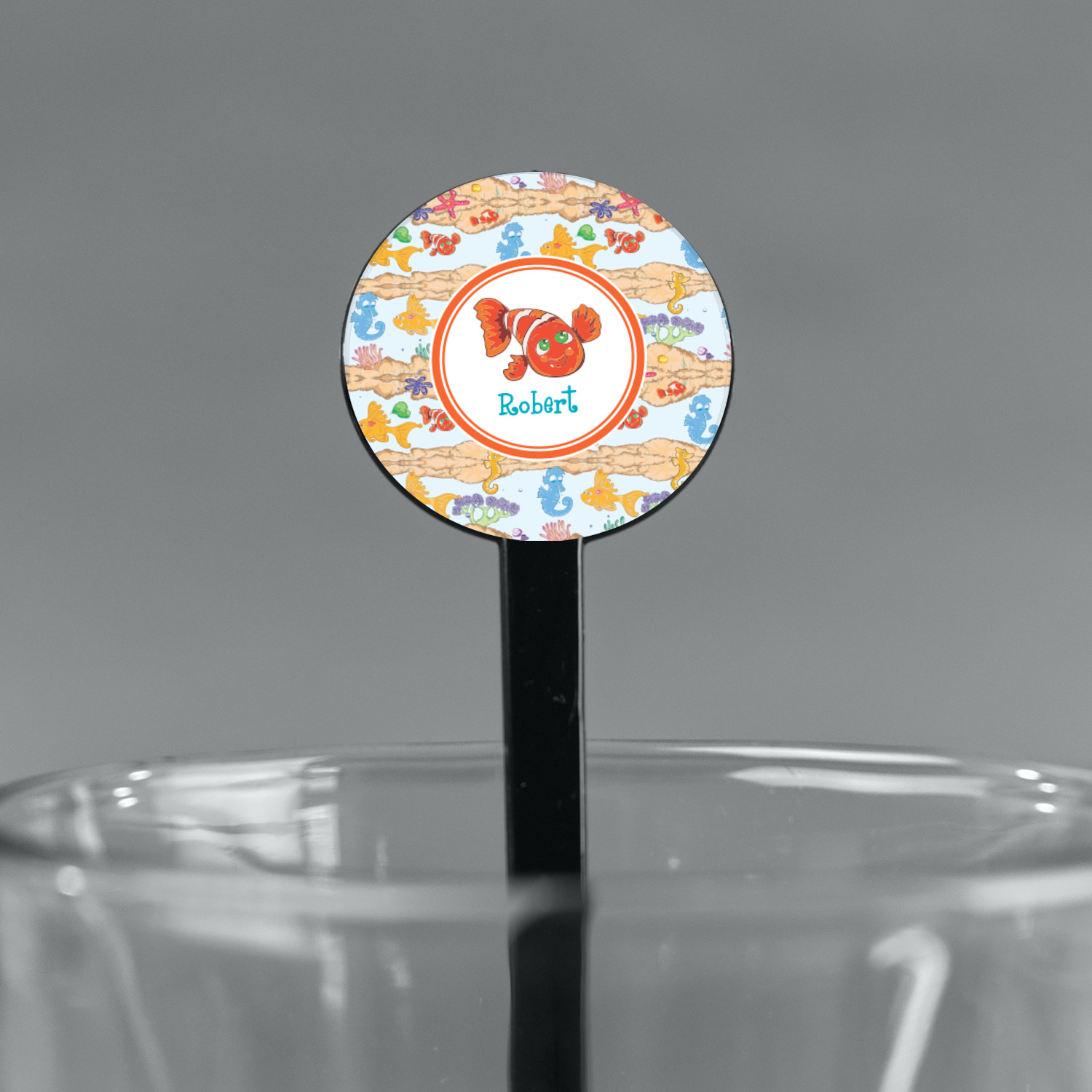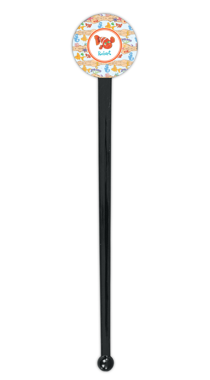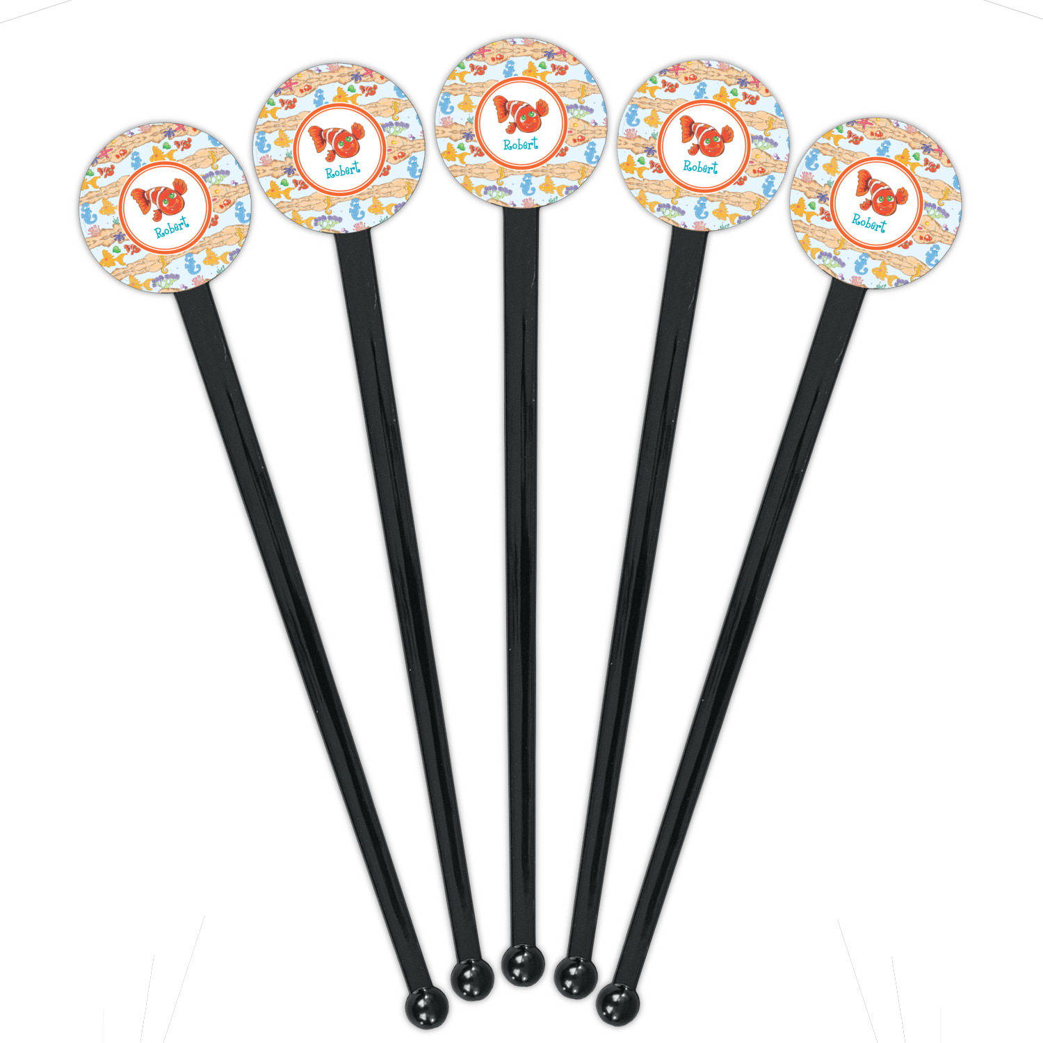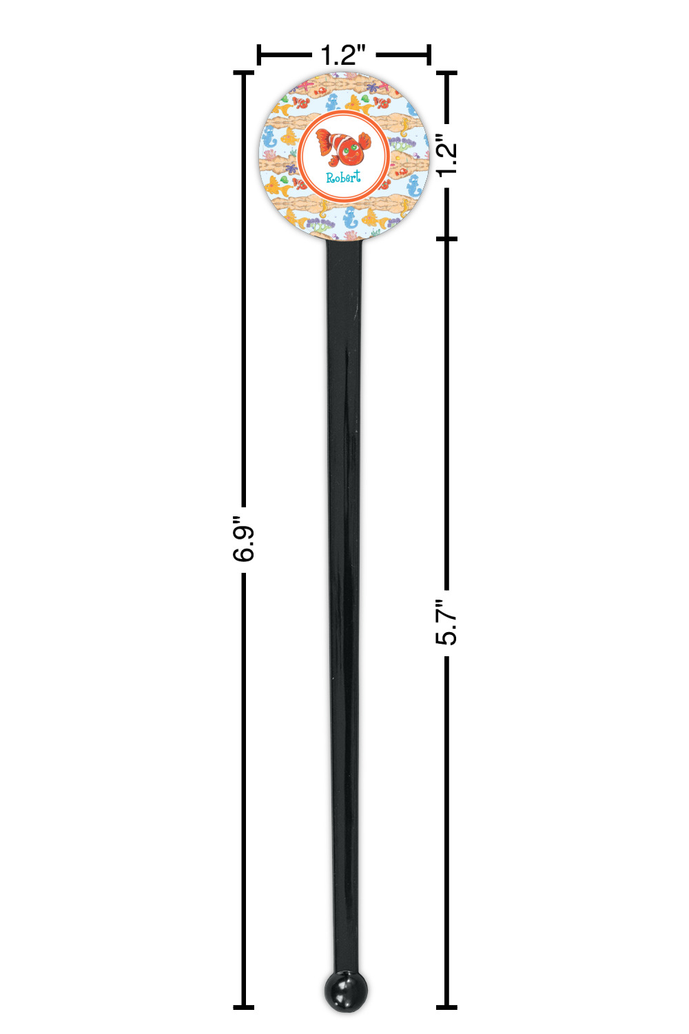 Coastal / Beach Style Designs for 7" Round Plastic Stir Sticks - Black - Double-Sided