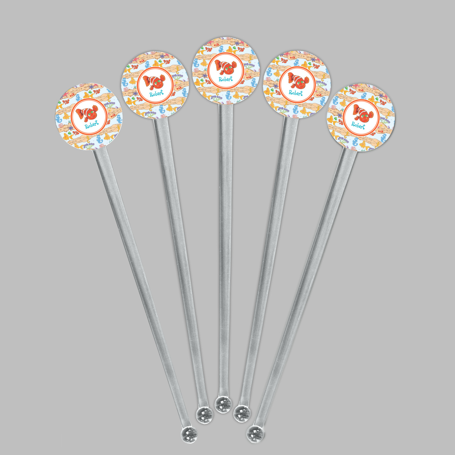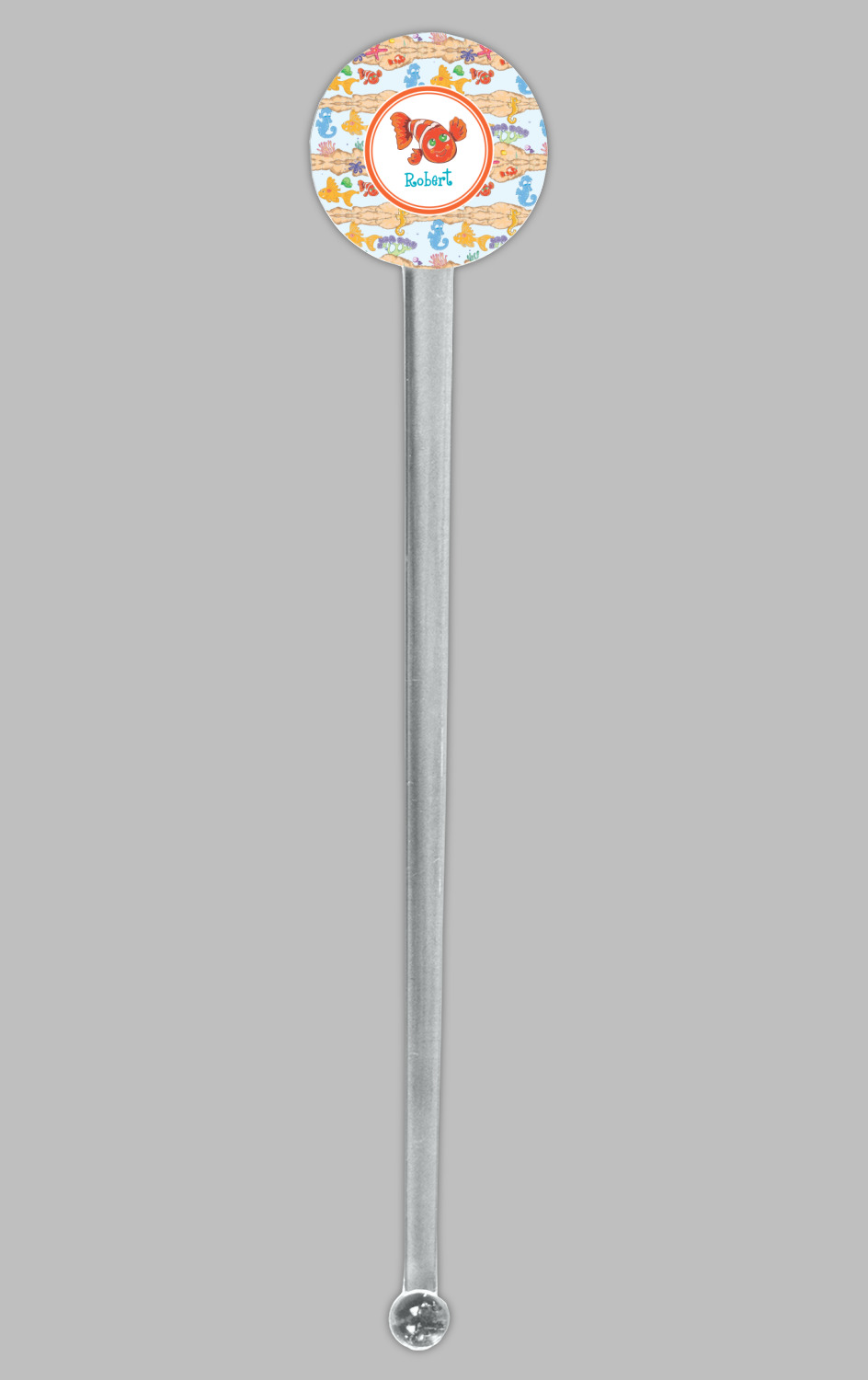 Coastal / Beach Style Designs for 7" Round Plastic Stir Sticks - Clear