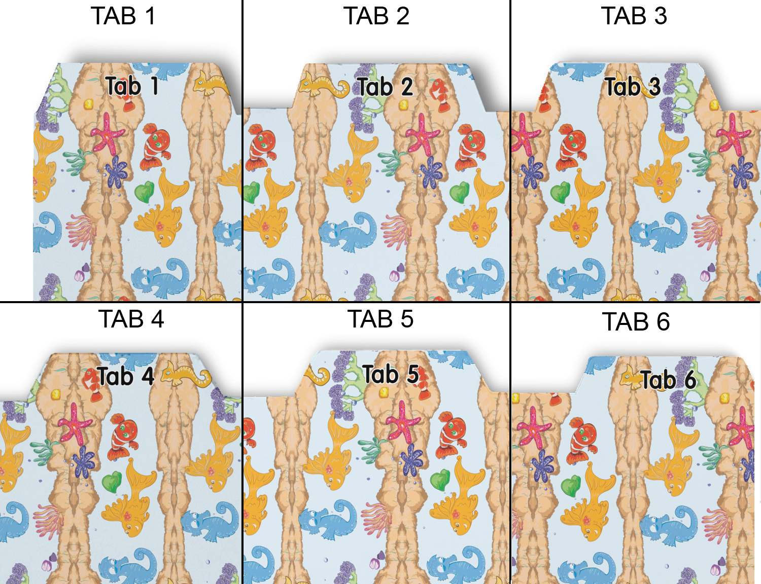 Whether you use binders at school or at work, we have designs to suit all of them. Available in 5 or 6 tab sets, you are sure to find a set to suit your needs. The back of each one is white and can be used to take notes, write vital information on, etc.