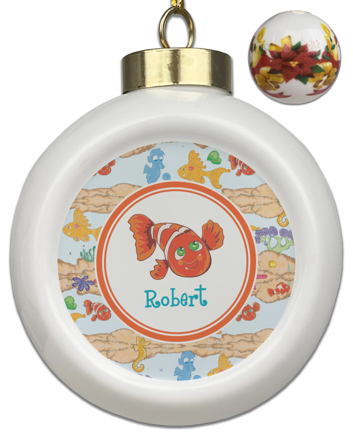 Our Christmas ornaments are a unique ceramic ball shape with a twist as it has a flat face to display your custom design! Select from one of our two design types - Christmas Tree or Poinsettia Garland - to adorn the curved back of your personal design. Each ornament measures 3H x 2.5W x 2D accompanied with a gold string accent for finishing touches to hang on your beautiful Christmas tree!