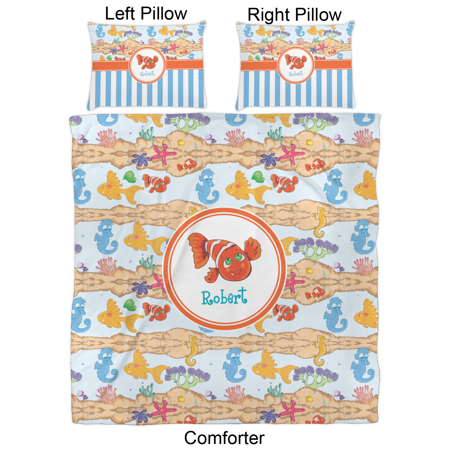 We have hundreds of different design templates for you to choose from Each design can be customized to your exact specifications. Not only can you customize the comforter, but you can also customize each pillow sham e.g. for a queen comforter set you have have Mr & Mrs pillow shams with the last name on comforter.