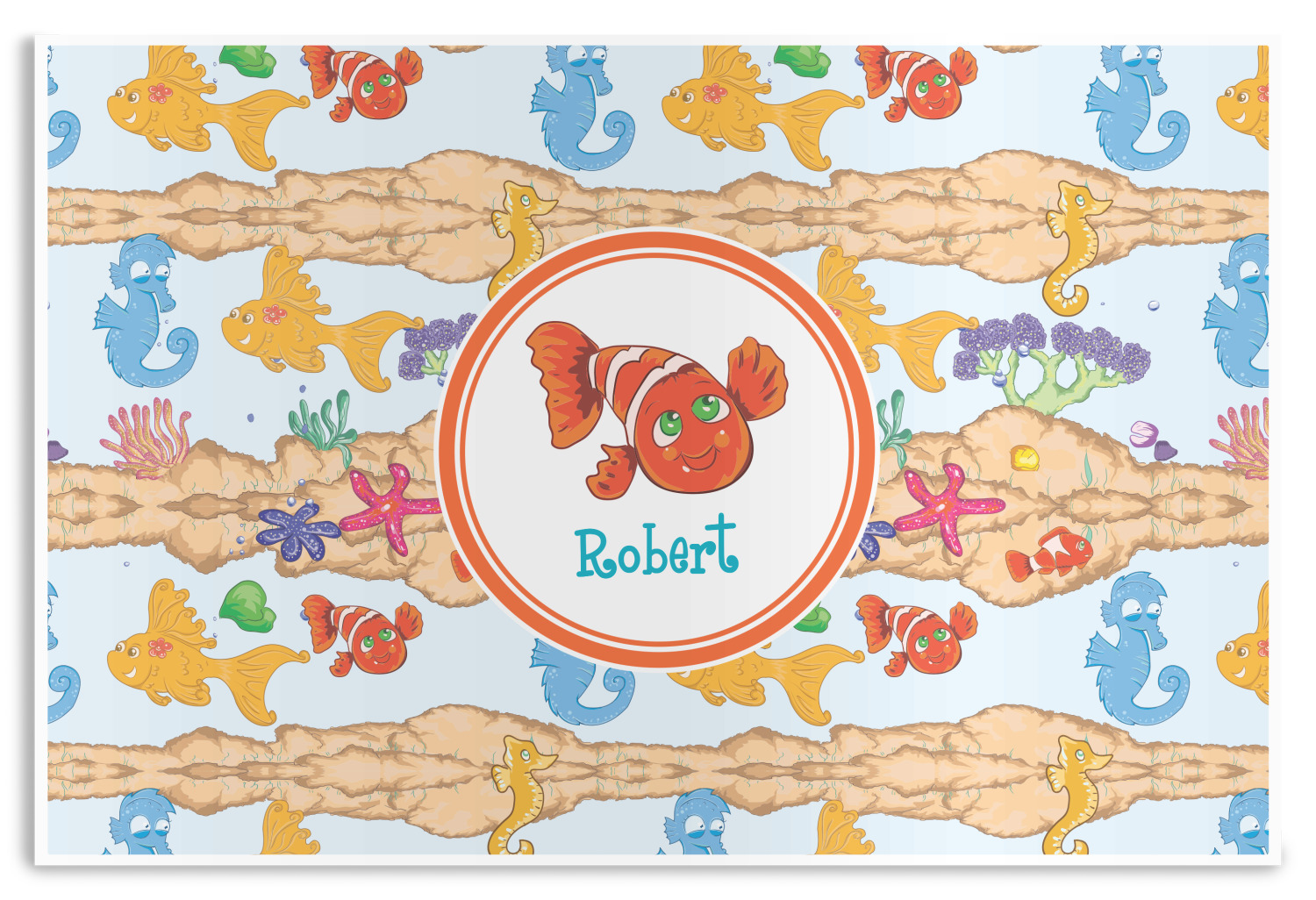 Calling all children who would rather be at the beach than at school! This underwater design, featuring brightly colored fish and sea horses, is perfect for you. A laughing clown fish on the label completes the whimsical look.