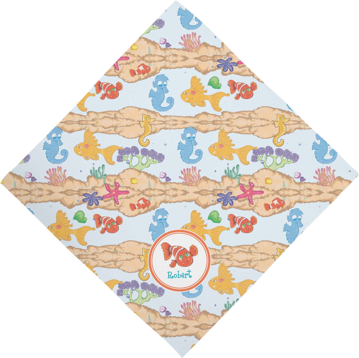 This beautiful pet bandana really is the perfect accessory. It is made from a silky feeling polyester and measures at approximately 23" x 23". Your personalization will be printed on a diagonal, so that you are able to read the personalization when folded into a triangle. This bandana fits best on large dogs, but can be folded smaller if there is no personalized text to fit smaller pets.