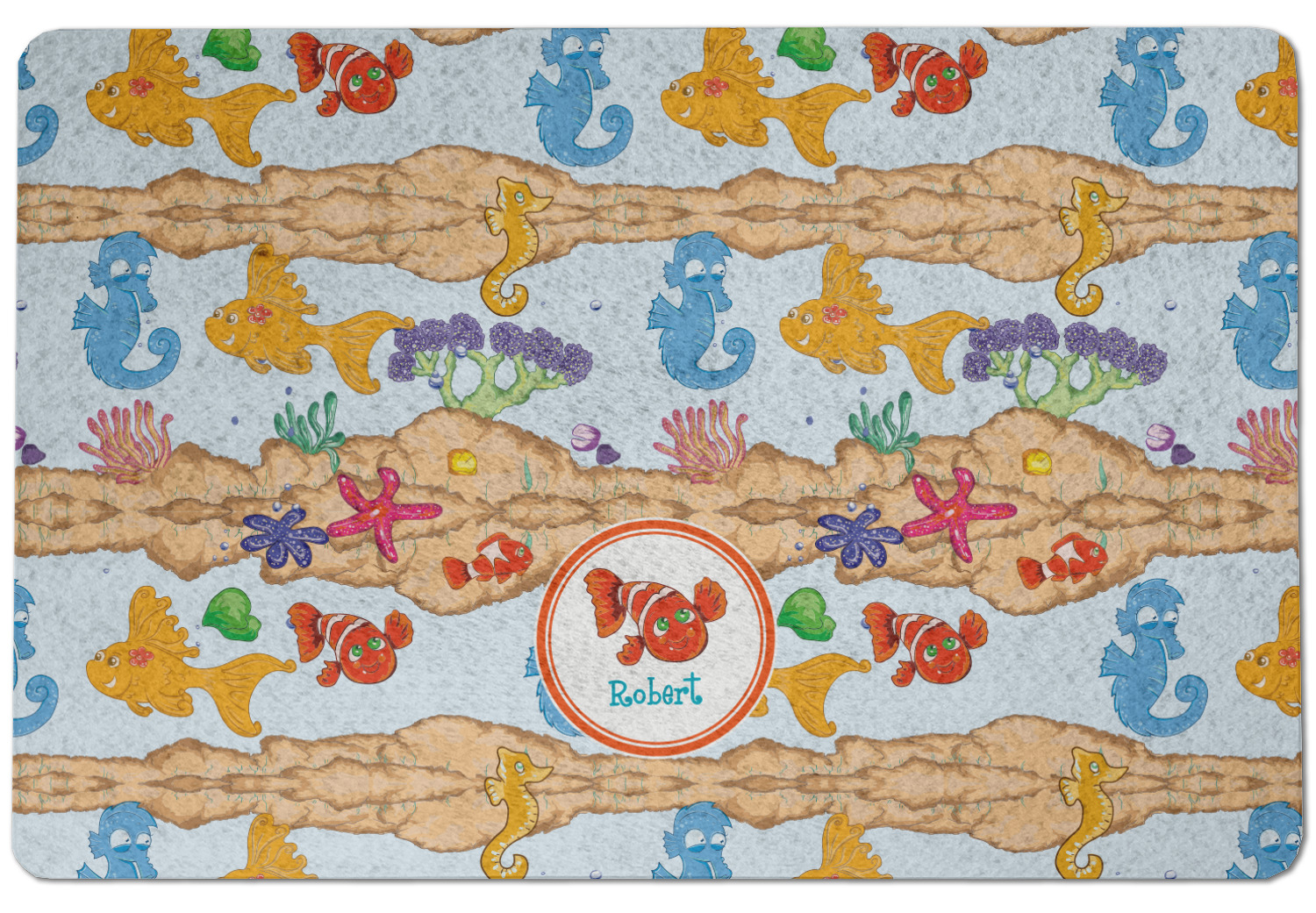 This dog bowl mat, fabricated from polyester, proudly displays your customized design on its top, while its bottom includes a non-slip rubber. This feature allows it to remain firmly in place, even when your dog spills his/her water. With 3 sizes available (18" x 12", 24" x 18", 30" x 24"), the pet food mat has ample space for both a food and water bowl for any sized dogs. Though specified for dogs' use, these mats are also a splendid option for cats.