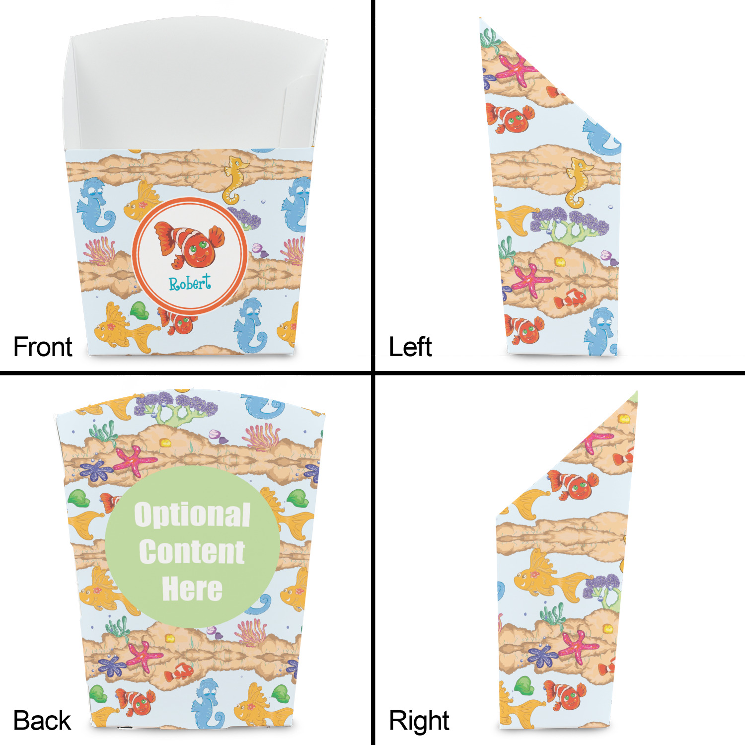 These favor boxes are printed in full color on quality cardstock - so coordinating the french fry favor boxes to match your event's themes or colors should be a breeze. You can upload your own design including artwork, logos or photos