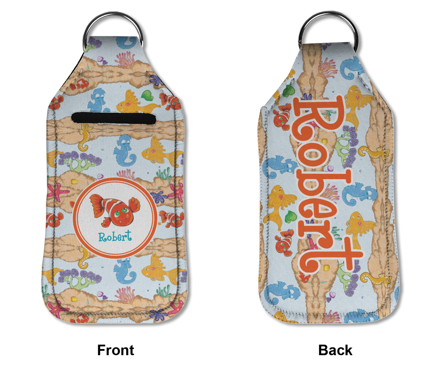 Each hand sanitizer holder comes with its own empty travel-sized, refillable hand sanitizer sure to fit snug in your customized sanitizer case! Our hand sanitizer cases are a durable, yet soft neoprene material sure to last any daily activities or travel agenda. Customize and personalize a hand sanitizer bottle holder with one of our two sizes - small (4.25" x 2.25") or large (5.5" x 2.5"). Each travel sanitizer holder comes with a keyring for attachment on bags, keys, or more!