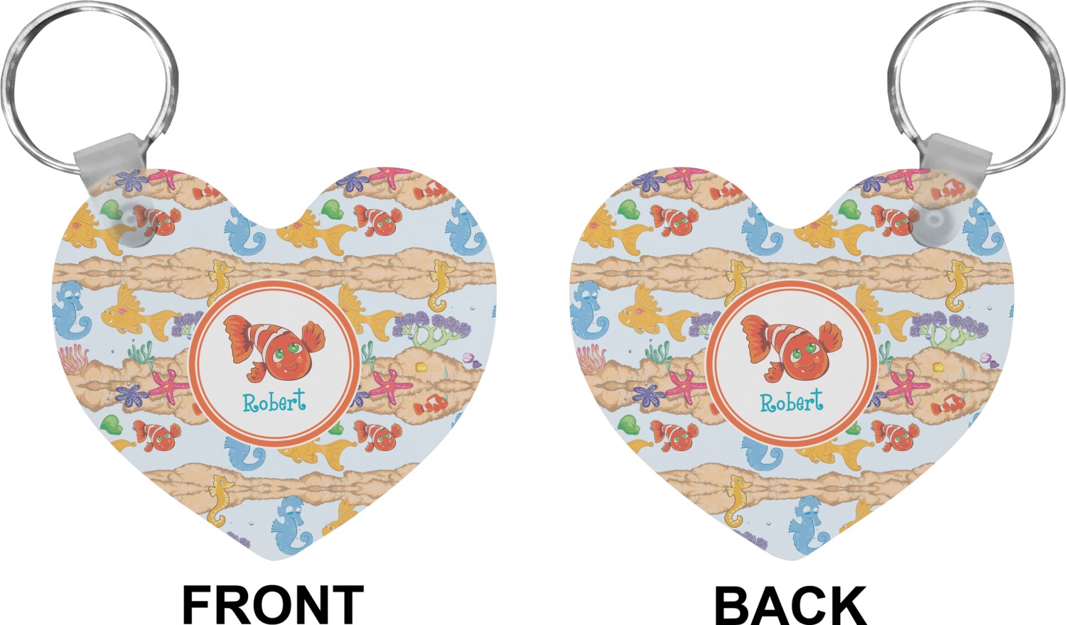 Our personalized keychains attach to the included metal, split key ring with a plastic, removable snap. Since a metal ring is included with your purchase, you have the liberty to keep your keys together on the ring, with or without your unique keychain. We offer this keychain in three different shapes: circle, heart, or diamond. We print your personalized design(s) on both sides of the key chain, and the surface has a glossy, reflective finish that only emphasizes your design. Each keychain is approximately 2.25 by 2.25 inches.