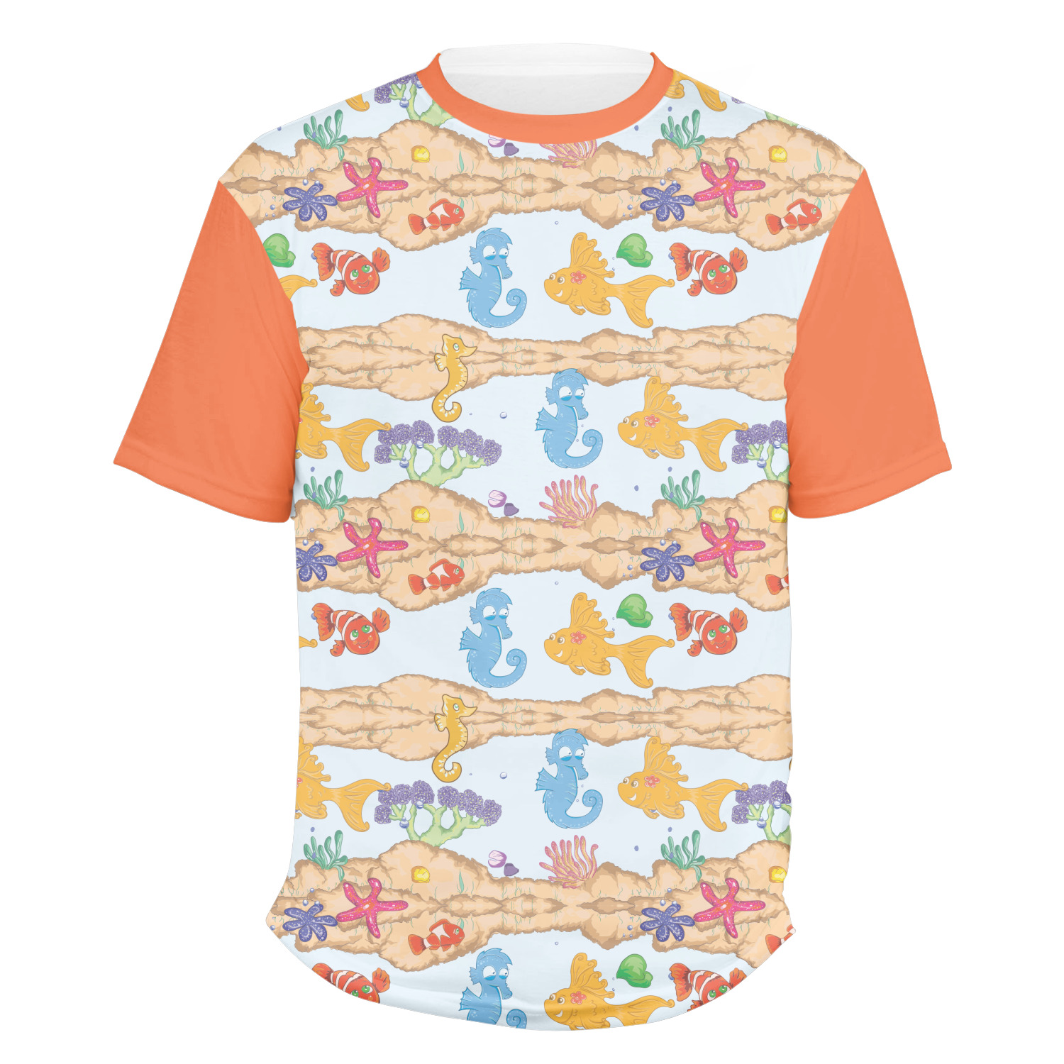 Our mens t-shirts are a lovely jersey knit polyester. They come in 6 different sizes ranging from Small to XXX-Large. These shirts are your basic comfy crew neck t-shirts that look good on anyone. You are able to personalize the sleeves, front, AND back! Isn't that awesome?! Make everything one color or all different. The choice is yours.