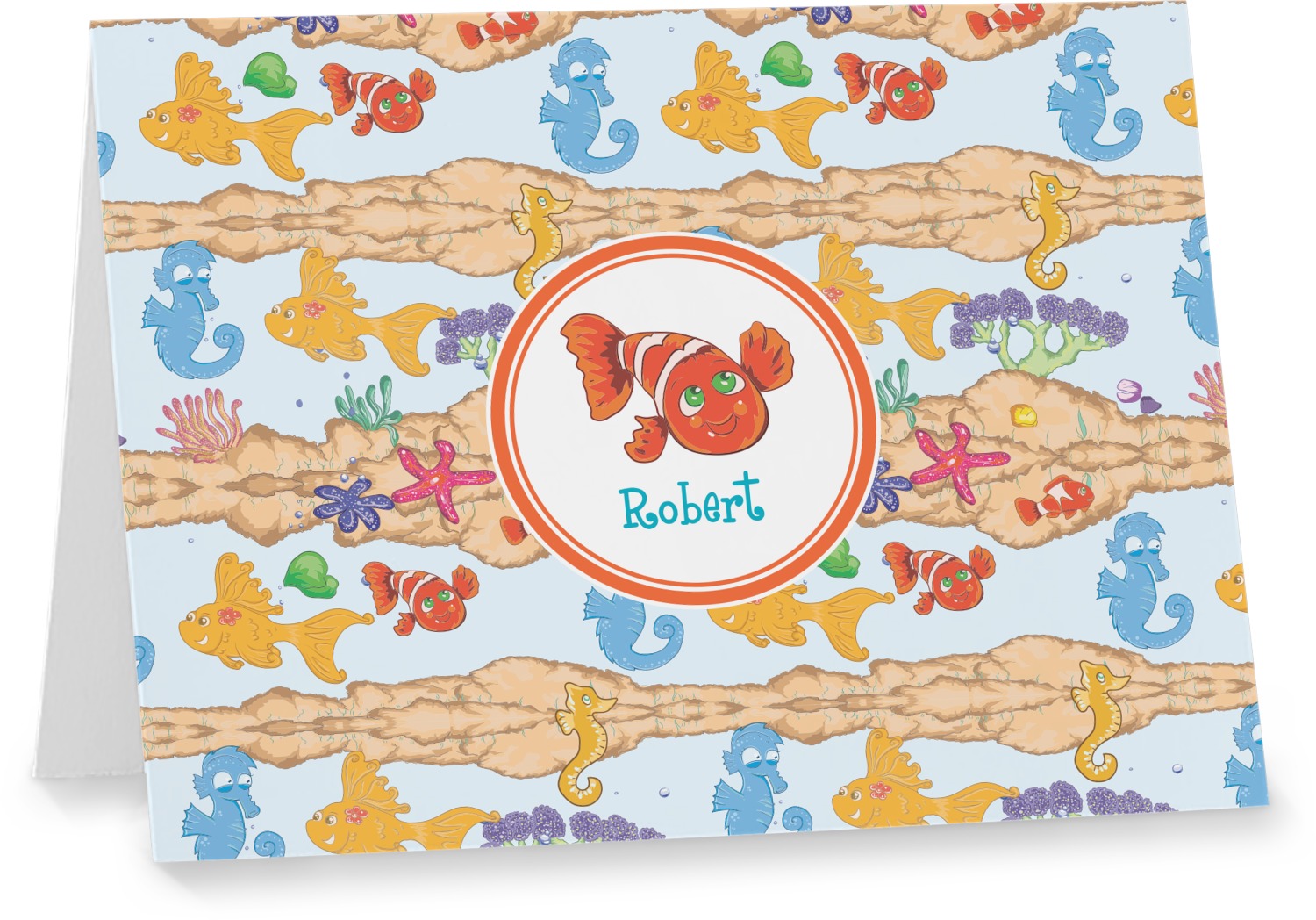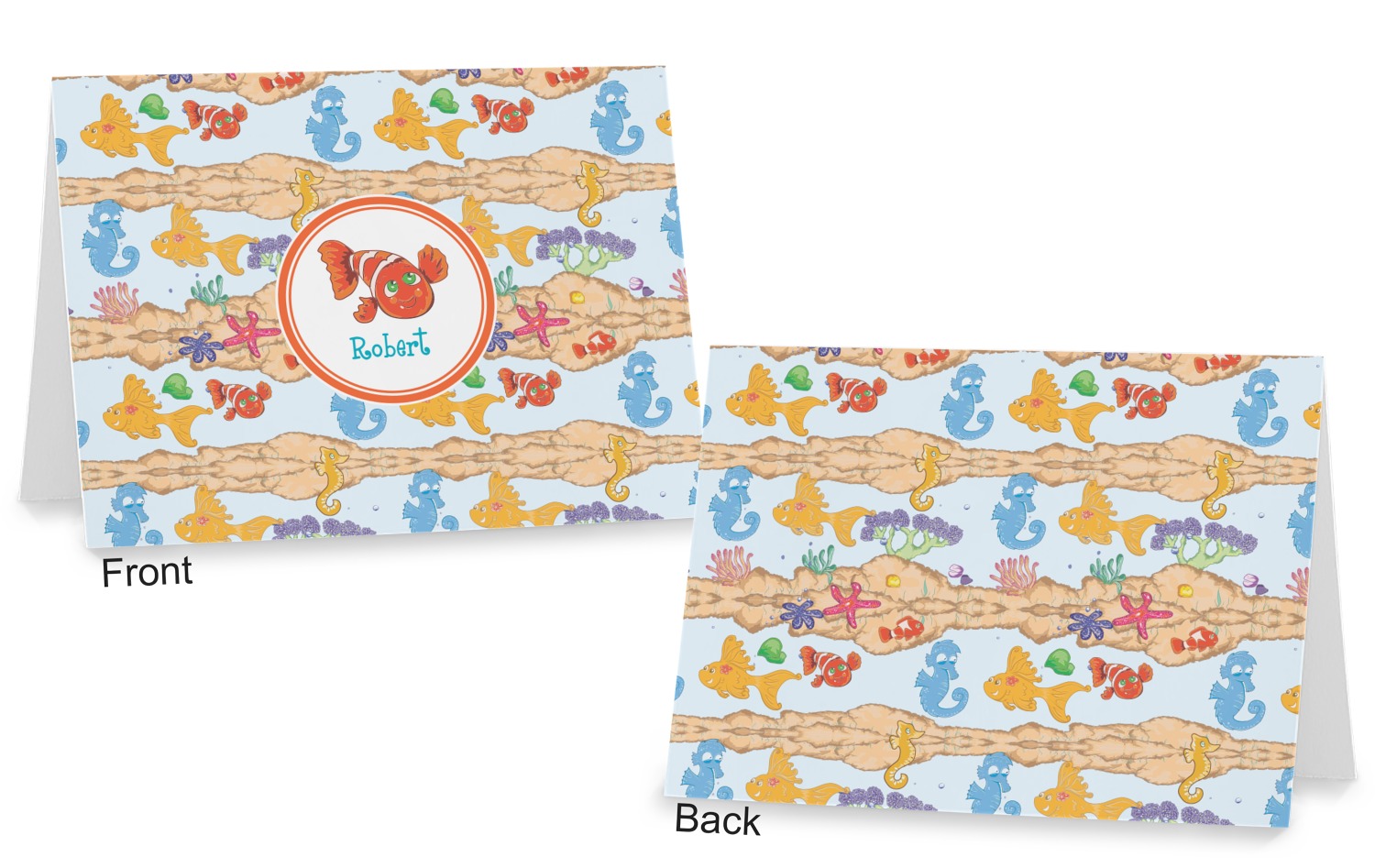 Our custom folded note cards are printed on premium 100lb. card stock and comes with white envelopes. The note card measure 5.5 by 4.25 inches and are blank on the inside for your handwritten message.