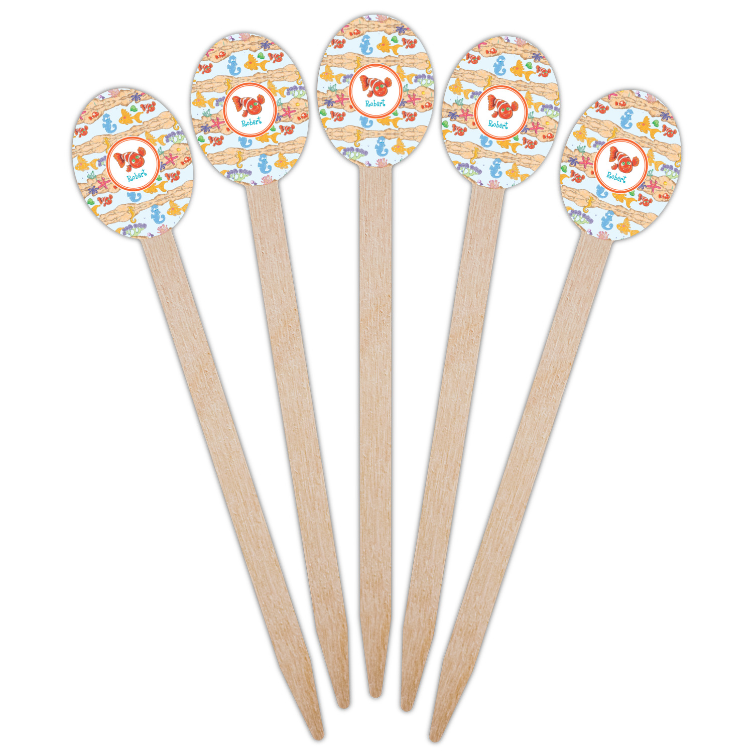 Coastal / Beach Style Designs for Oval Wooden Food Picks - Single-Sided