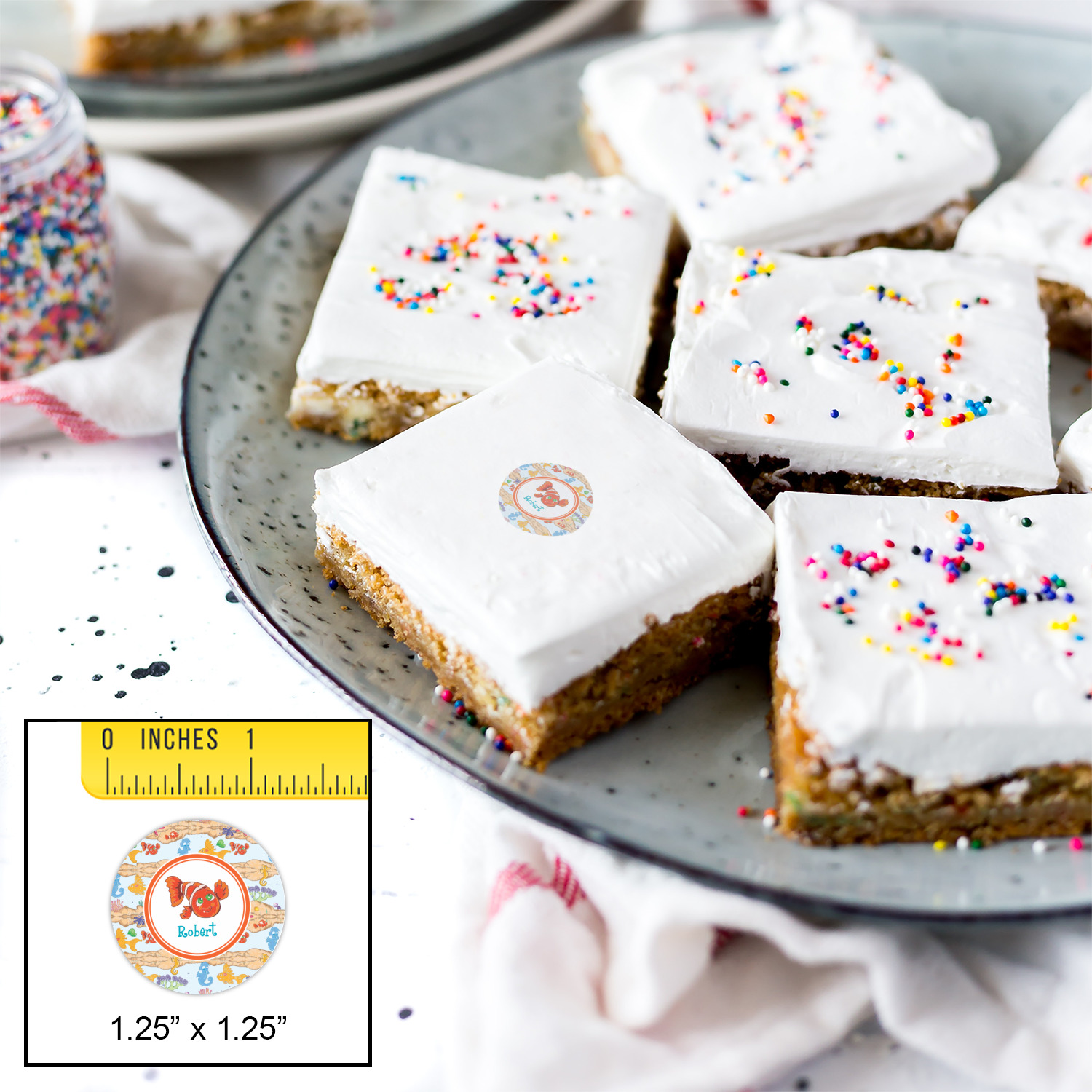 Your customized cookie toppers can be placed on top of any dessert with an icing top.The icing helps adhere the cookie topper to the dessert.