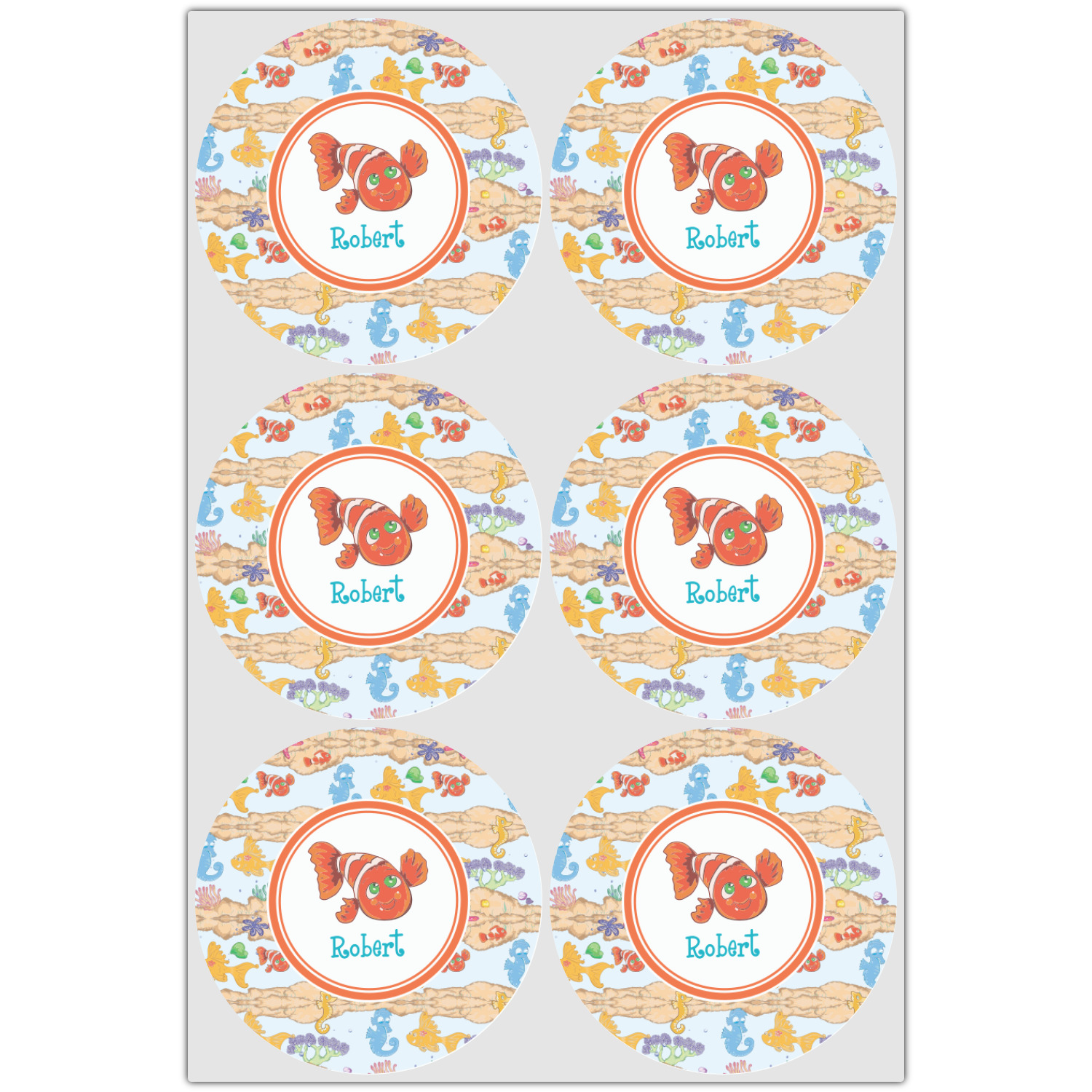 Calling all children who would rather be at the beach than at school! This underwater design, featuring brightly colored fish and sea horses, is perfect for you. A laughing clown fish on the label completes the whimsical look.