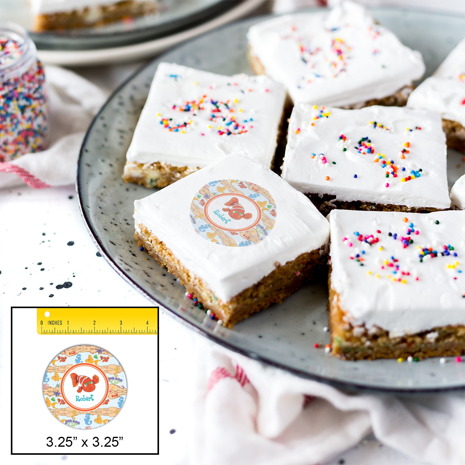 Your customized cookie toppers can be placed on top of any dessert with an icing top.The icing helps adhere the cookie topper to the dessert.