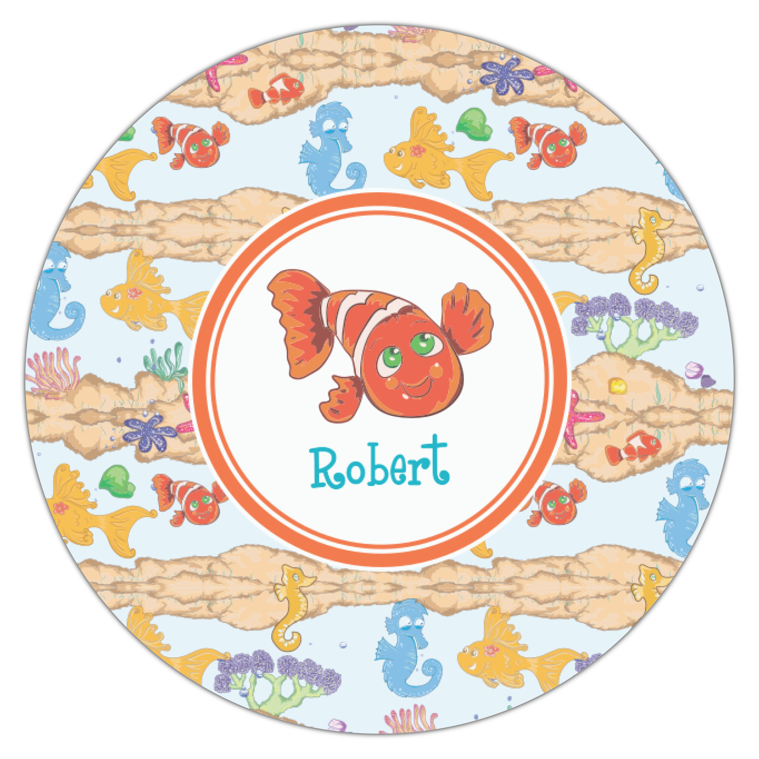Calling all children who would rather be at the beach than at school! This underwater design, featuring brightly colored fish and sea horses, is perfect for you. A laughing clown fish on the label completes the whimsical look.