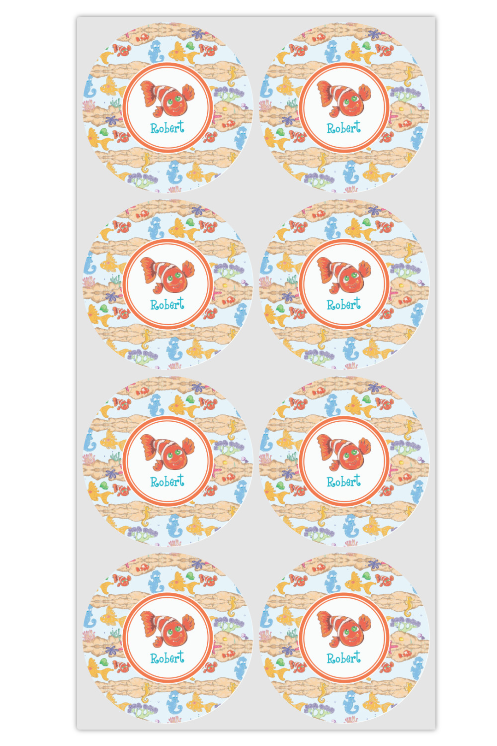 Calling all children who would rather be at the beach than at school! This underwater design, featuring brightly colored fish and sea horses, is perfect for you. A laughing clown fish on the label completes the whimsical look.