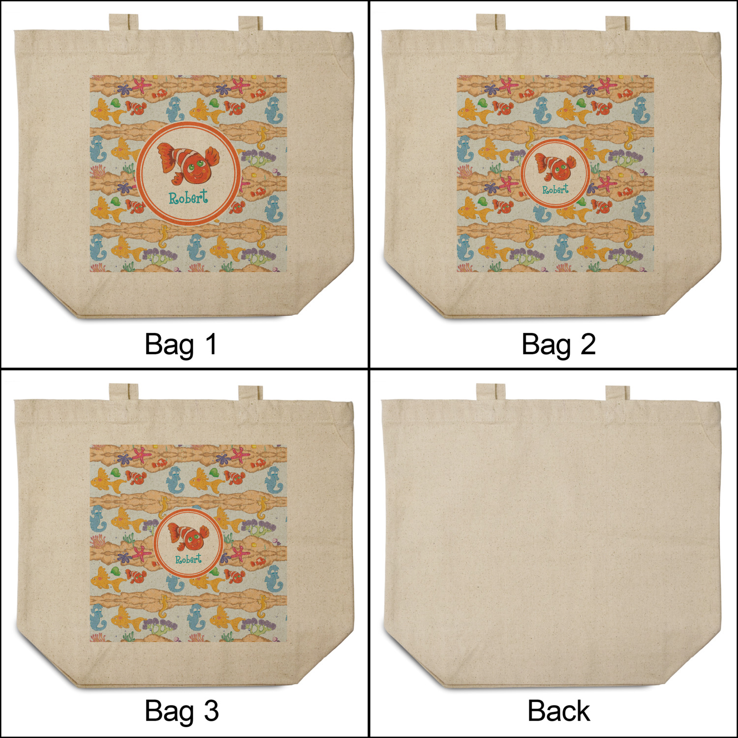 Coastal / Beach Style Designs for Reusable Cotton Grocery Bags - Set of 3