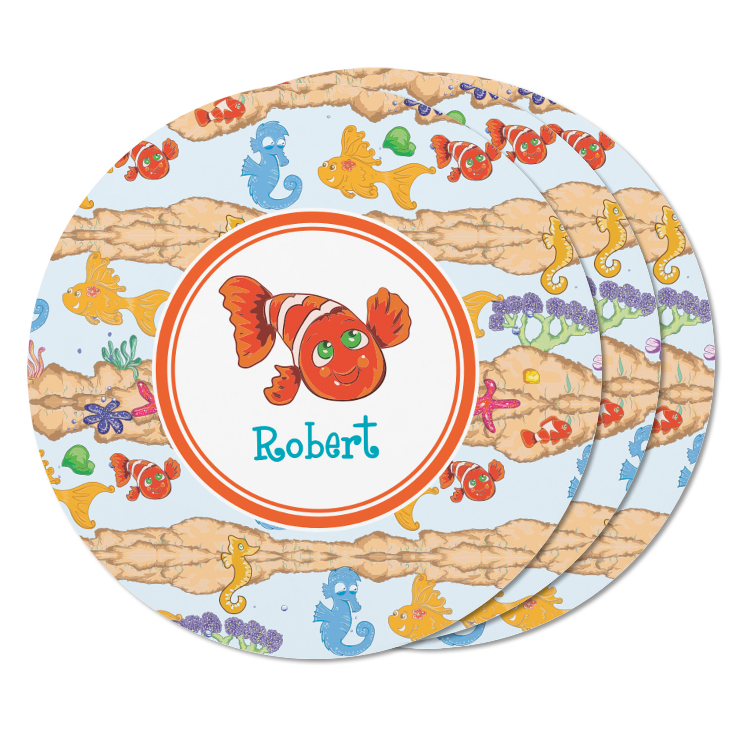 Calling all children who would rather be at the beach than at school! This underwater design, featuring brightly colored fish and sea horses, is perfect for you. A laughing clown fish on the label completes the whimsical look.