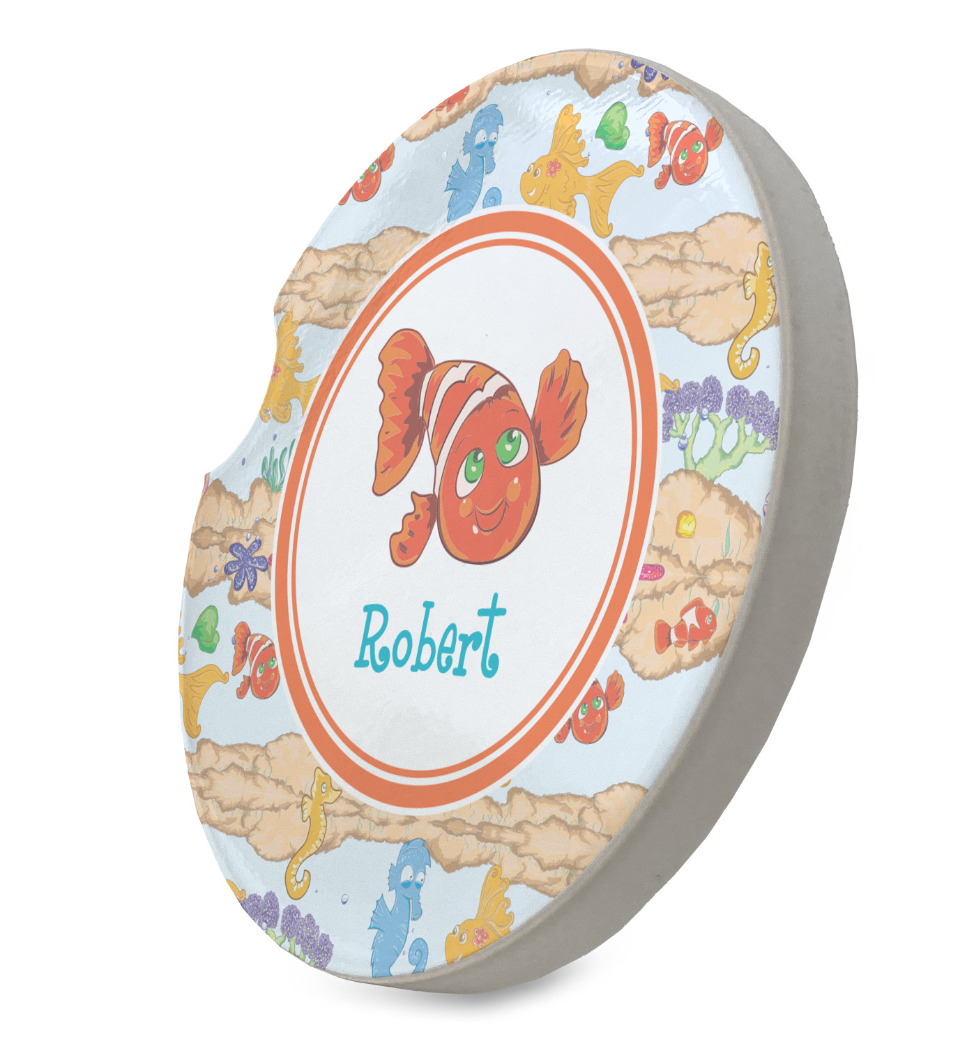 These sandstone coasters are round, robust, and feature a smoothed glossy side to exhibit your customized design. With a 2.5 inch diameter, these stone coasters will fit snugly inside most cup holders. This model also features a semi-circle shaped divot that allows for easy removal, despite the tight fit. You can purchase these car cup holder coasters in a pair, or singularly, depending on your needs.