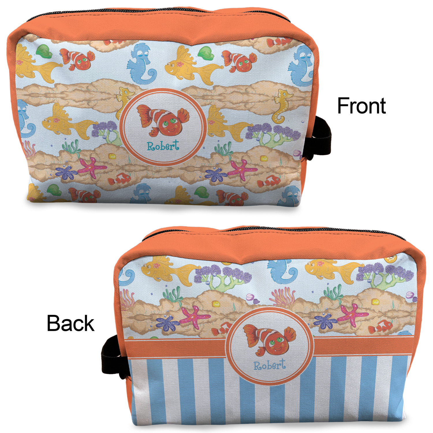 Designing a toiletry bag for yourself or as a gift can be a lot of fun. Our goal is for you to design a bag that reflects your personality and personal style. Our dopp kits are set up so you can design the front, the back and select a coordinating color for the zippered area.