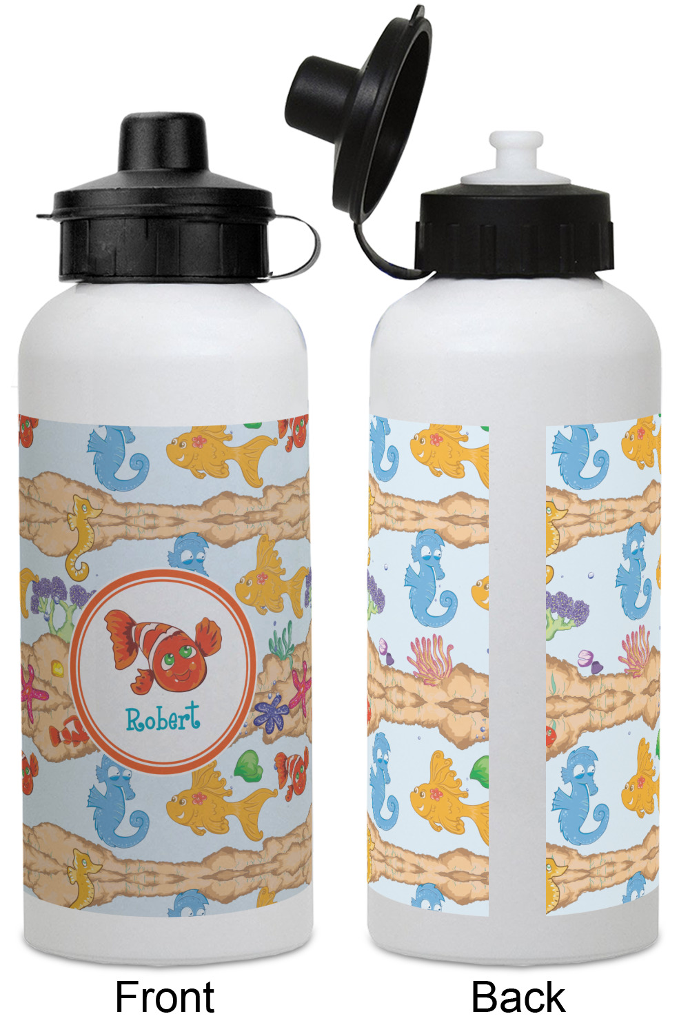 Calling all children who would rather be at the beach than at school! This underwater design, featuring brightly colored fish and sea horses, is perfect for you. A laughing clown fish on the label completes the whimsical look.