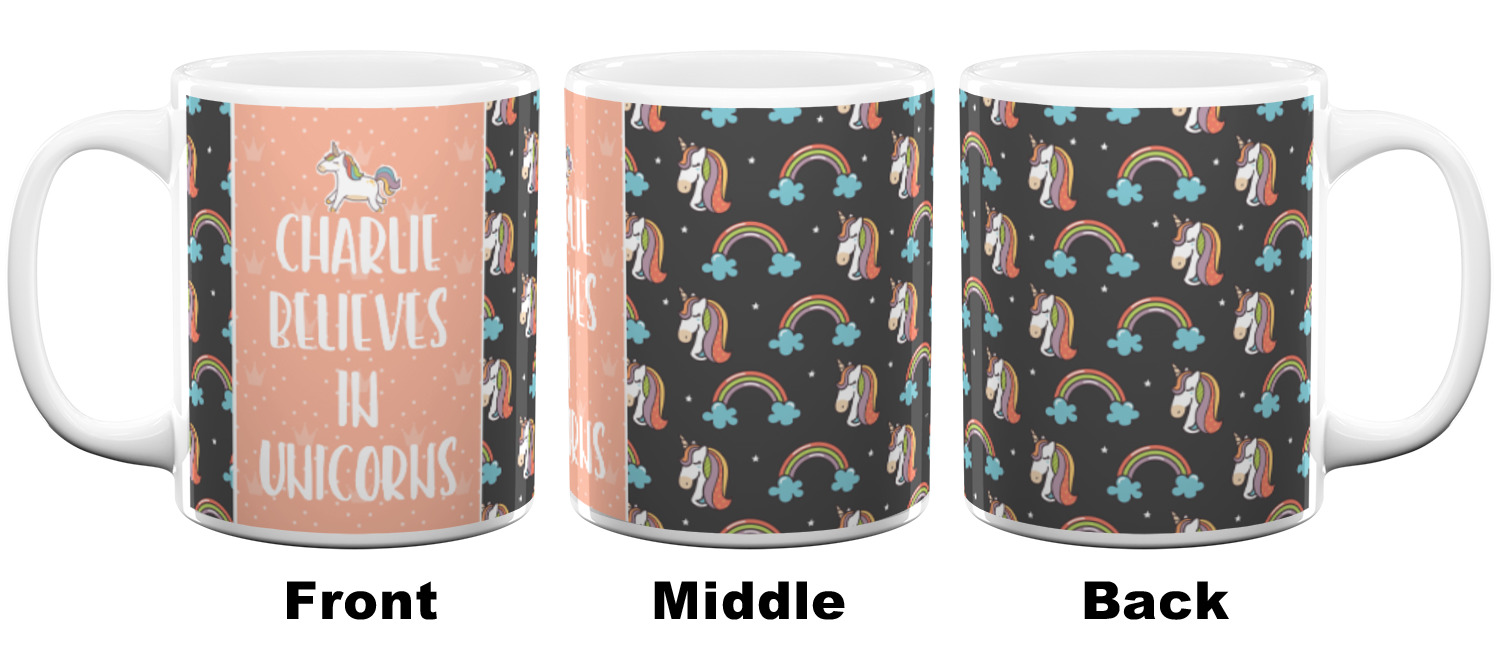 Our ceramic mugs have your design or photo printed along the surface with a gloss finish. The ceramic material of our mugs is dishwasher and microwave safe so you can reheat your tea or coffee if needed! We offer two different base colors with multiple mug sizes. The white ceramic mugs come in three size options - 11 oz., 15 oz., and 20 oz. Our black ceramic mugs are sold in either 11 oz. or 15 oz. sizes.