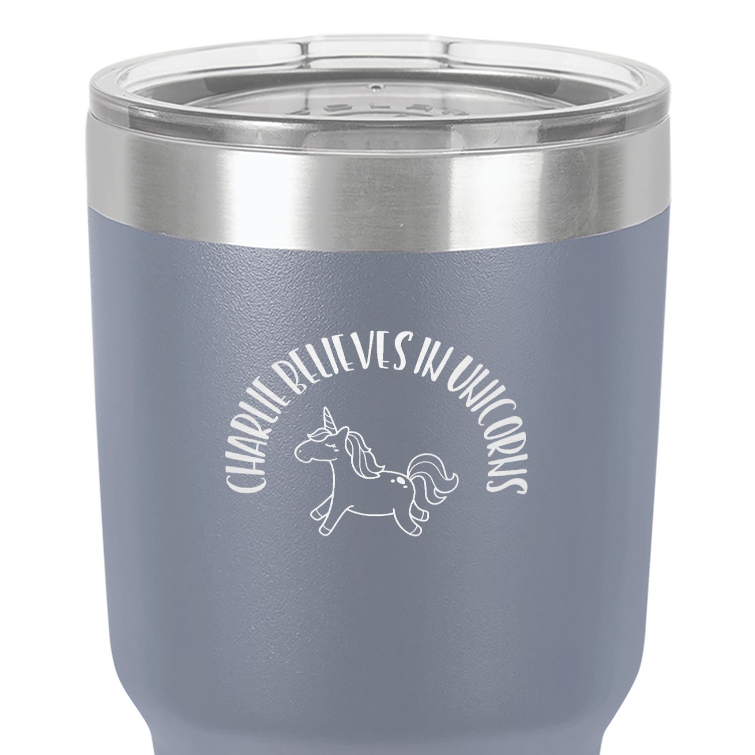 With our personalized 30 oz double wall stainless steel tumblers, you'll never have to settle for a plain, boring tumbler again! These tumblers will be a wonderful addition to your drinkware collection and will make those long commutes much brighter. Personalize one for yourself, or give these personalized tumblers as a gift to relatives, friends, or coworkers!