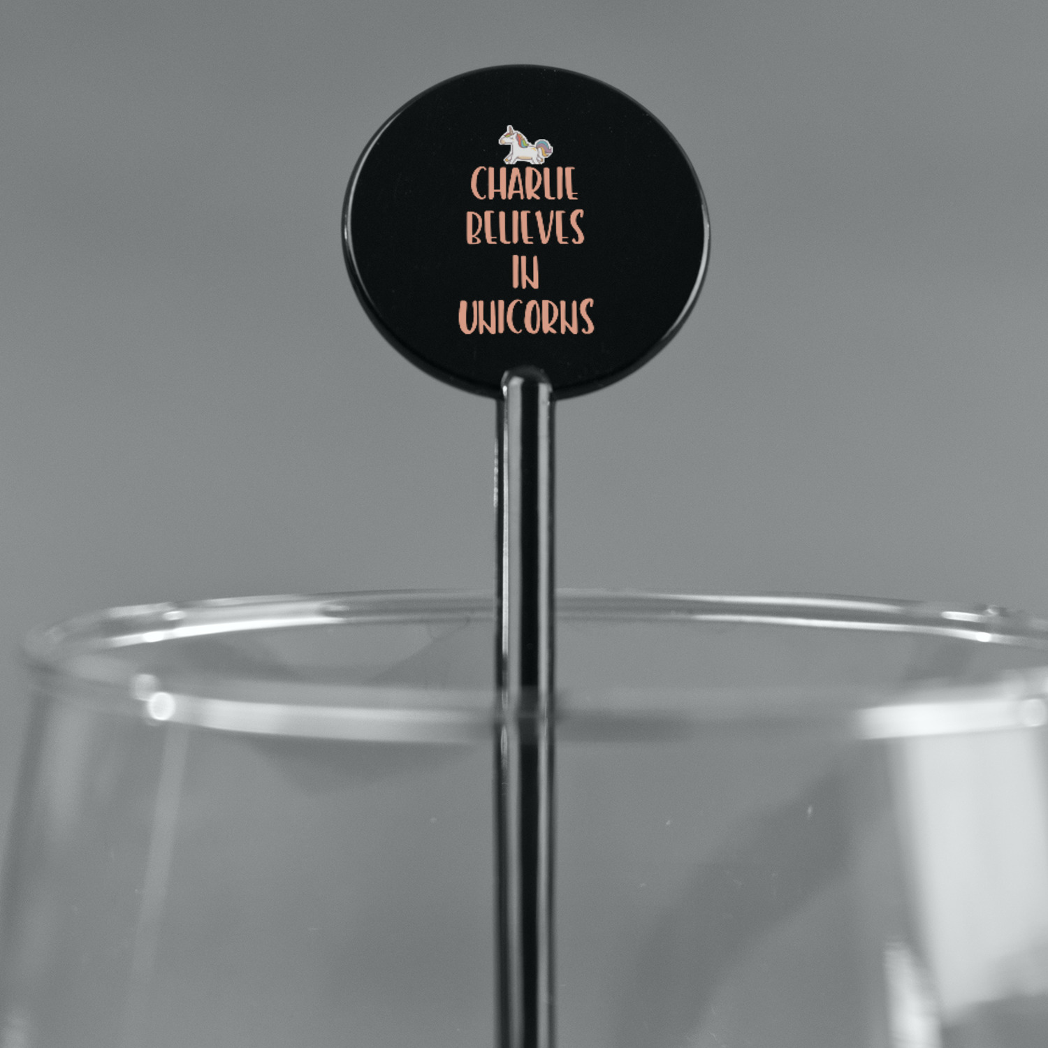 This fun unicorn design has a dark grey background with brightly colored unicorns and rainbows all across it.This pattern is on either side of a peach background with subtle crowns on it. Front and center is a fun saying that says "Charlie Believes In Unicorns" where "Charlie" can be replaced with your name. On the top of this text is a majestic leaping unicorn.