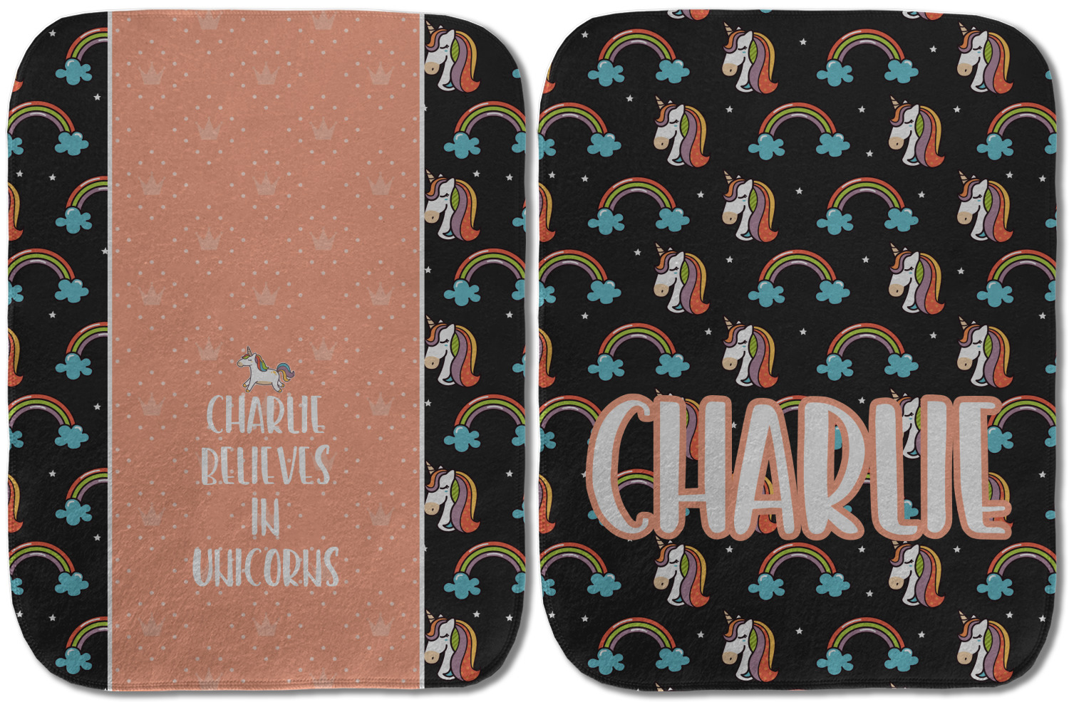 Choose your baby burp cloth from our two styles - Fleece (rectangular) or Microfiber Velour (peanut shape). The lightweight and absorbent design makes each burp cloth multipurpose; use them as a burp pad, a lap pad, a changing table, or a spare cloth to clean up any baby mess. Your customization is displayed across the front with baby-safe ink to ensure extra comfort with a white backing.