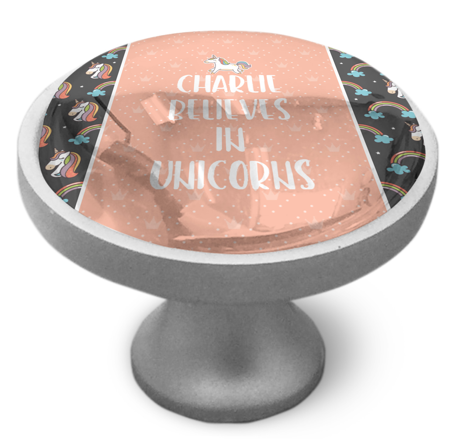 We sell these cabinet pulls in two different colors to better match your room's color scheme. We offer an oil-rubbed bronze base that is black in color, and a satin nickel option, which has a silver color. Your design is displayed across a high gloss vinyl insert that is placed on top of these cabinet handles. We then place a 1 inch thick glass cabochon atop the design, which seals the cabinet knob and makes the colors of your customization stand out. These custom cabinet knobs are approximately 1.3 inches in diameter. Your purchase includes a 1 inch screw that can be used to mount the knob to any cabinet in your home.