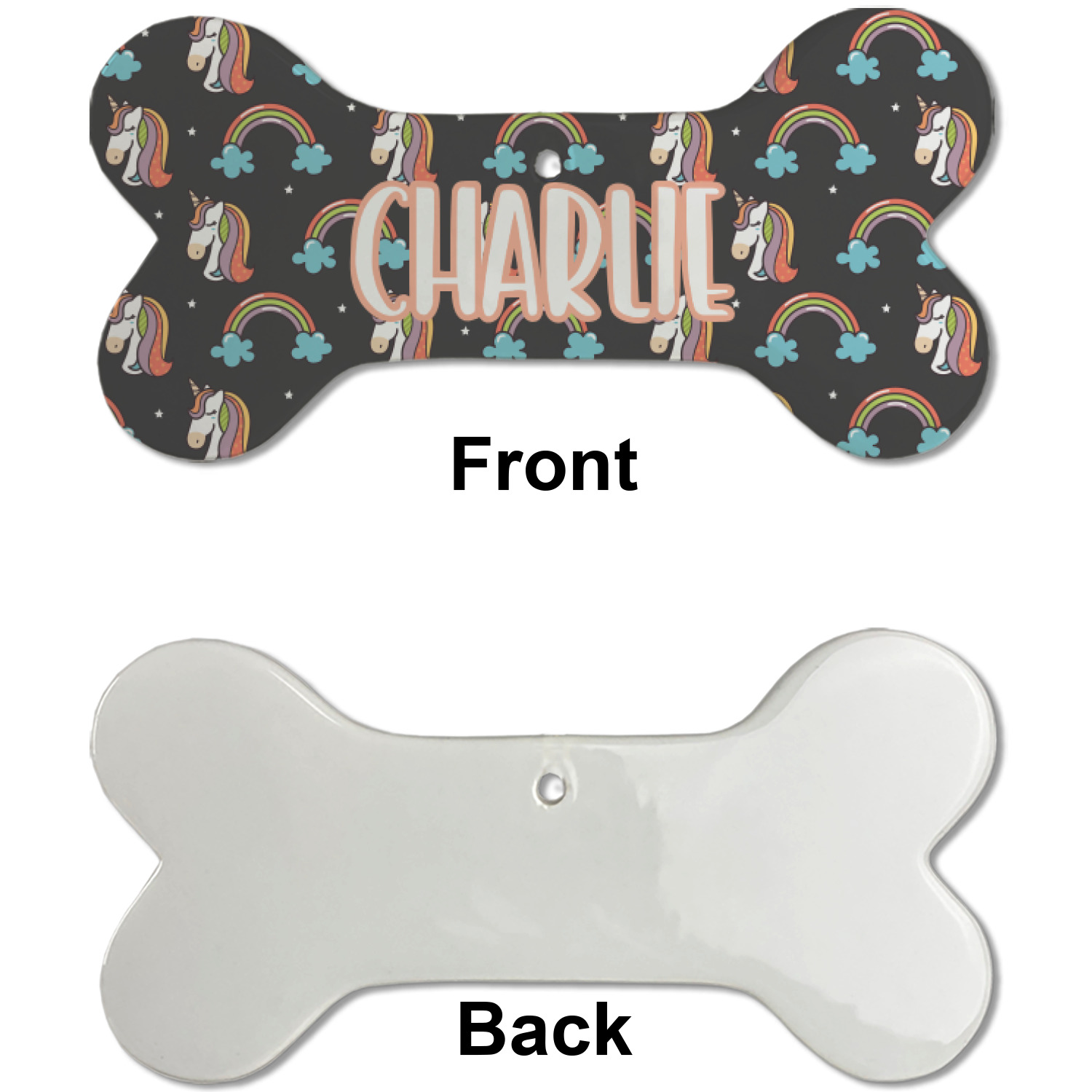 Our dog Christmas ornaments are a ceramic material with a bone-shaped structure hung horizontally. We offer two printing styles to personalize your furry friend's ornament! Choose a one-sided printing, perfect for wall decor, memorial accessory, or doghouse nameplate! Create a double-sided ornament perfect for adorning the Christmas tree. Each dog bone ornament is approximately 4.75" x 2.25" and is printed here in the USA.