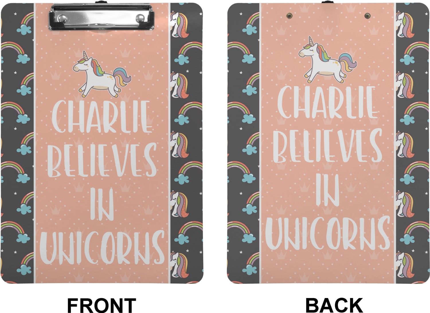 These custom clipboards are made from a strong hardboard and are coated with a glossy finish that accentuates the colors of your design. Alongside a retractable hook at its top, these decorative clipboards also feature sturdy clips to secure several sheets of paper. We sell these clipboards in two separate sizes. Our letter size measures at 12.5" L x 9" W, while our legal clipboard is approximately 15.5" L x 9" W. On both models, your personalization is printed on both sides of this clipboard and can be customized individually.