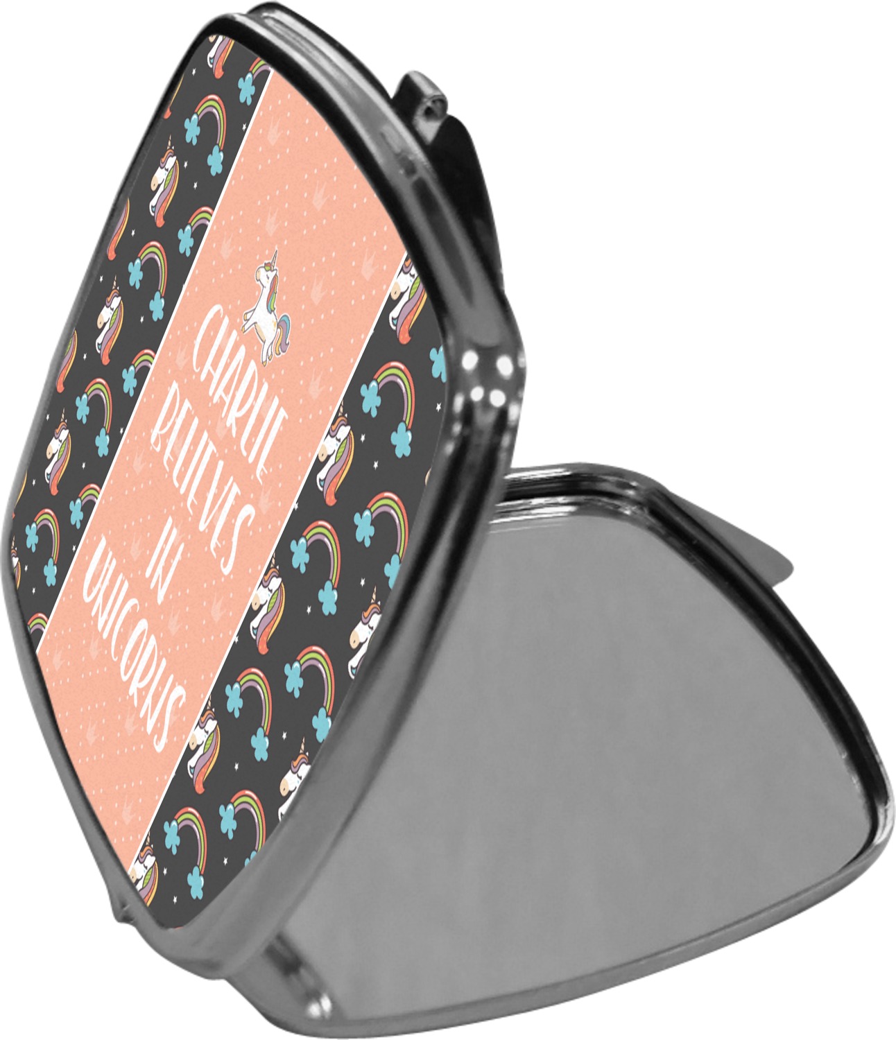 Every woman needs a compact mirror in her purse. Our personalized compact mirrors make a great bridesmaid gift or a mother's day gift, especially when you combine it with our personalized makeup bags. Get both in the same design or a coordinating design and have them both personalized.