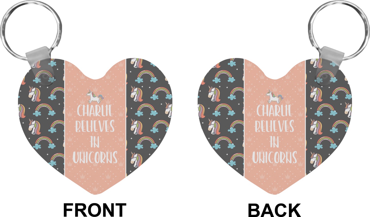 Our personalized keychains attach to the included metal, split key ring with a plastic, removable snap. Since a metal ring is included with your purchase, you have the liberty to keep your keys together on the ring, with or without your unique keychain. We offer this keychain in three different shapes: circle, heart, or diamond. We print your personalized design(s) on both sides of the key chain, and the surface has a glossy, reflective finish that only emphasizes your design. Each keychain is approximately 2.25 by 2.25 inches.