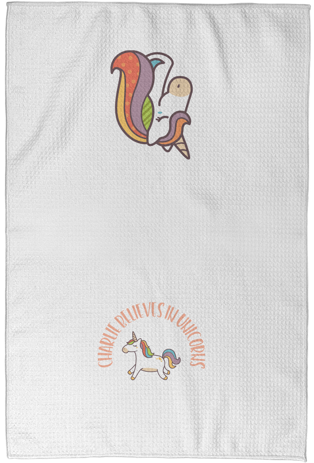 Each waffle weave kitchen towel is approximately 16 x 24 inches with your design printed on one side and the back is white.