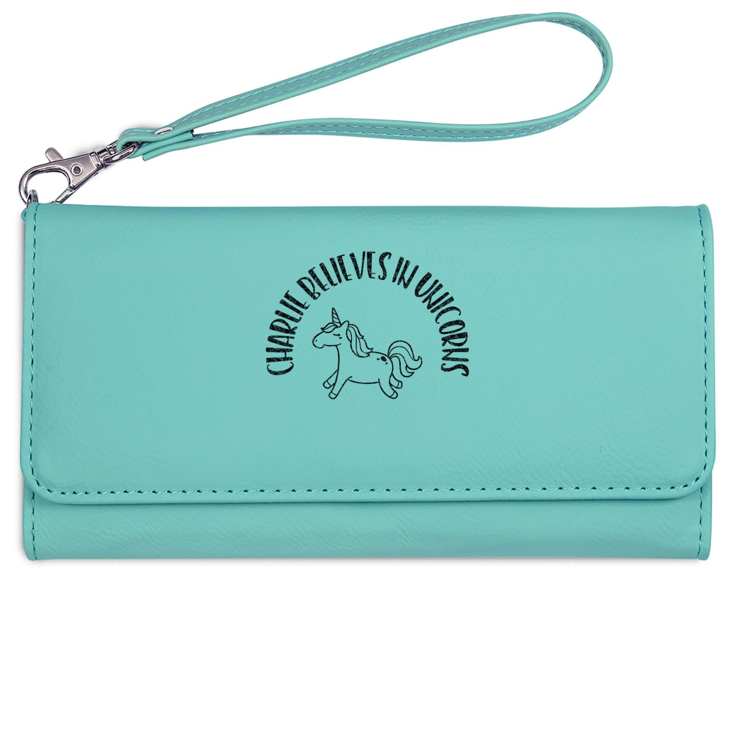 These personalized ladies leather wallets are available in 2 colors - rawhide / cognac and teal.