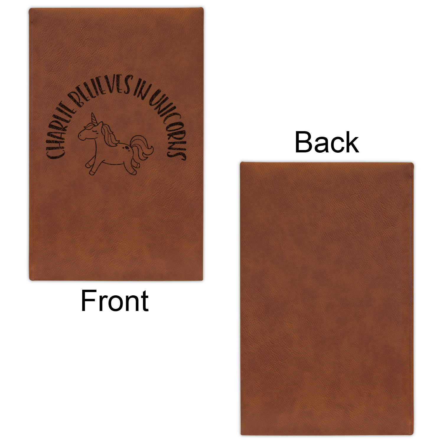 The faux leather covers are a rich cognac / rawhide color and can be customized with your design. From a simple name or monogram or a logo to a detailed mandala - the choice for customization & personalization is truly yours. Customize one of our designs or upload your own.