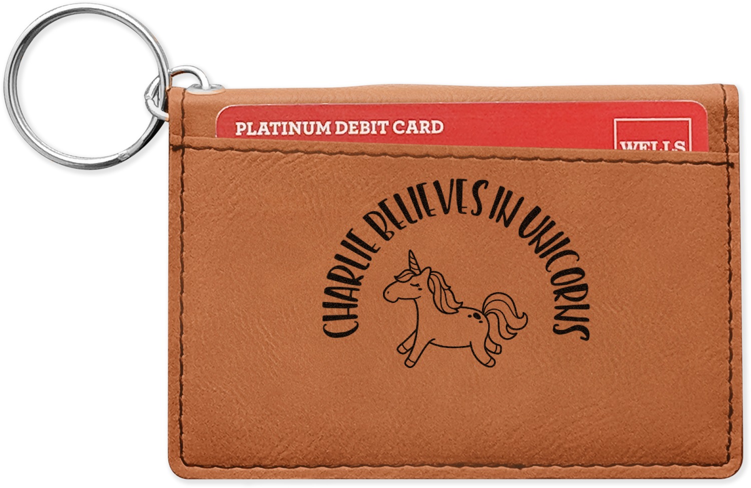 Interested in more leatherette or leather accessories? Check out our Apparel and Accessories department, where you can also personalize our phone wallets and money clips. If you're looking for customizable keychains to add to your keyring card holder, have a look at our round, heart, and diamond keychains. These keychains and more can be found in our Car and Automotive category.