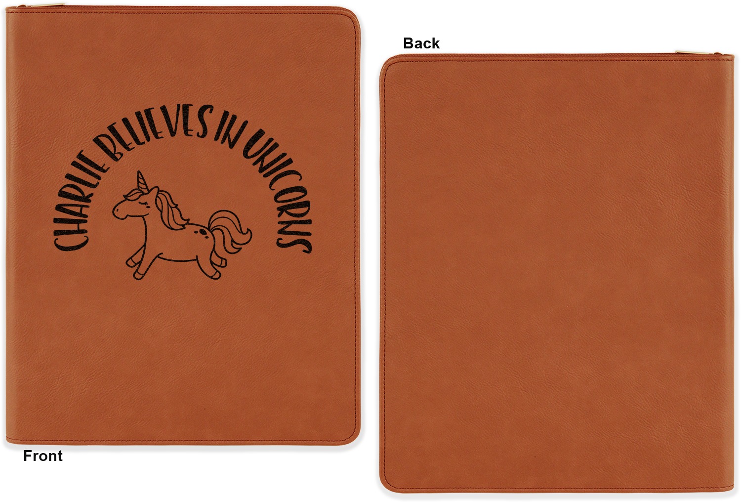 Have fun personalizing the front or the front and back of your portfolio. Choose a fun graphic, monogram, quote, or text to be laser engraved right onto your portfolio.