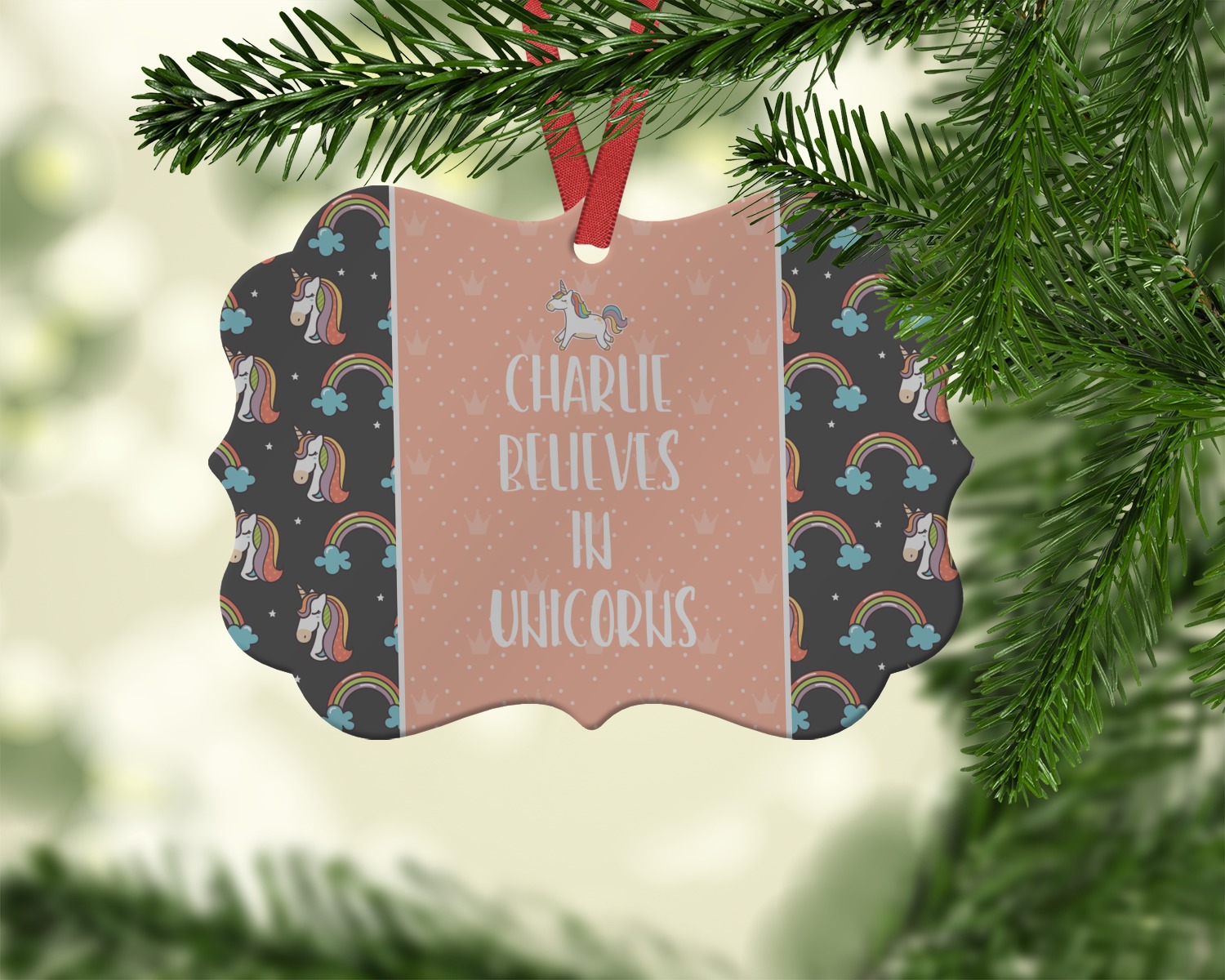 We offer double-sided printing on our personalized metal ornaments all with a gloss finish to make sure your Christmas tree continues to illuminate through the night. We offer 4 different metal ornament shapes to help express yourself or loved ones! Choose from our ball, paw print, star, or frame metal ornaments. Each metal ornament is an aluminum material sure to last you as many years as needed to share the joy and warmth of the holiday. We pair each customizable ornament with a red ribbon to tie your ornament and hang on your Christmas tree!