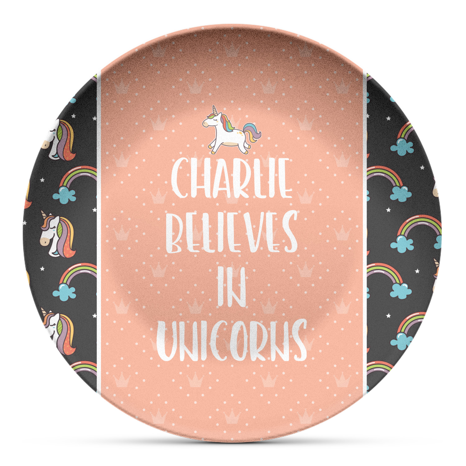 These plastic plates have the versatility, durability, and weight of melamine plates but are instead are made from a melamine-free composite, thermo-set, polymer plastic. These plates are made right here, in the USA, without the use of harmful chemicals, such as BPAs, formaldehyde, or DEHPs. Our elegant plastic plates can even withstand temperatures of up to 250 degrees Fahrenheit, for up to 60 minutes. The entire face of the plate exhibits your personalization in bright, vibrant color, and the plate's diameter measures at 10" long.