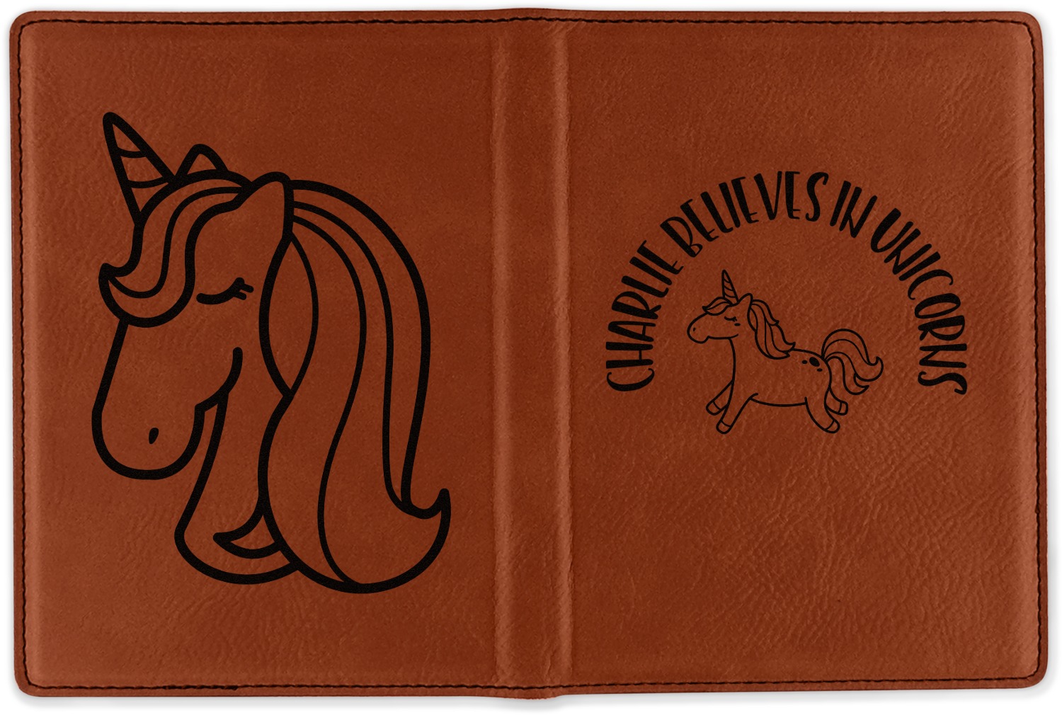 Although they are faux leather, these passport holders feel great in your hand. They are laser engraved either just on the front or the front and back. The image that is engraved onto your passport holder will be shades of black.