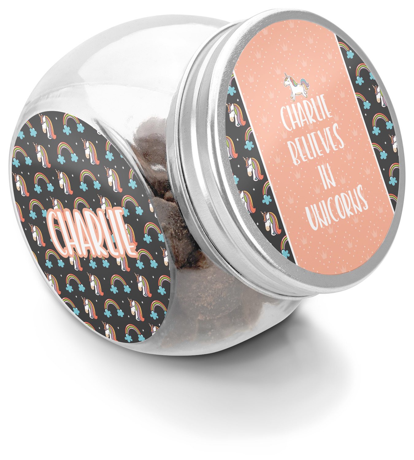 Pleased with your customized design? Perhaps purchase a matching dog food bowl, dog food mat, or even another, larger dog treat jar! Check out our Pet Accessories Department for even more gift options for your puppy.